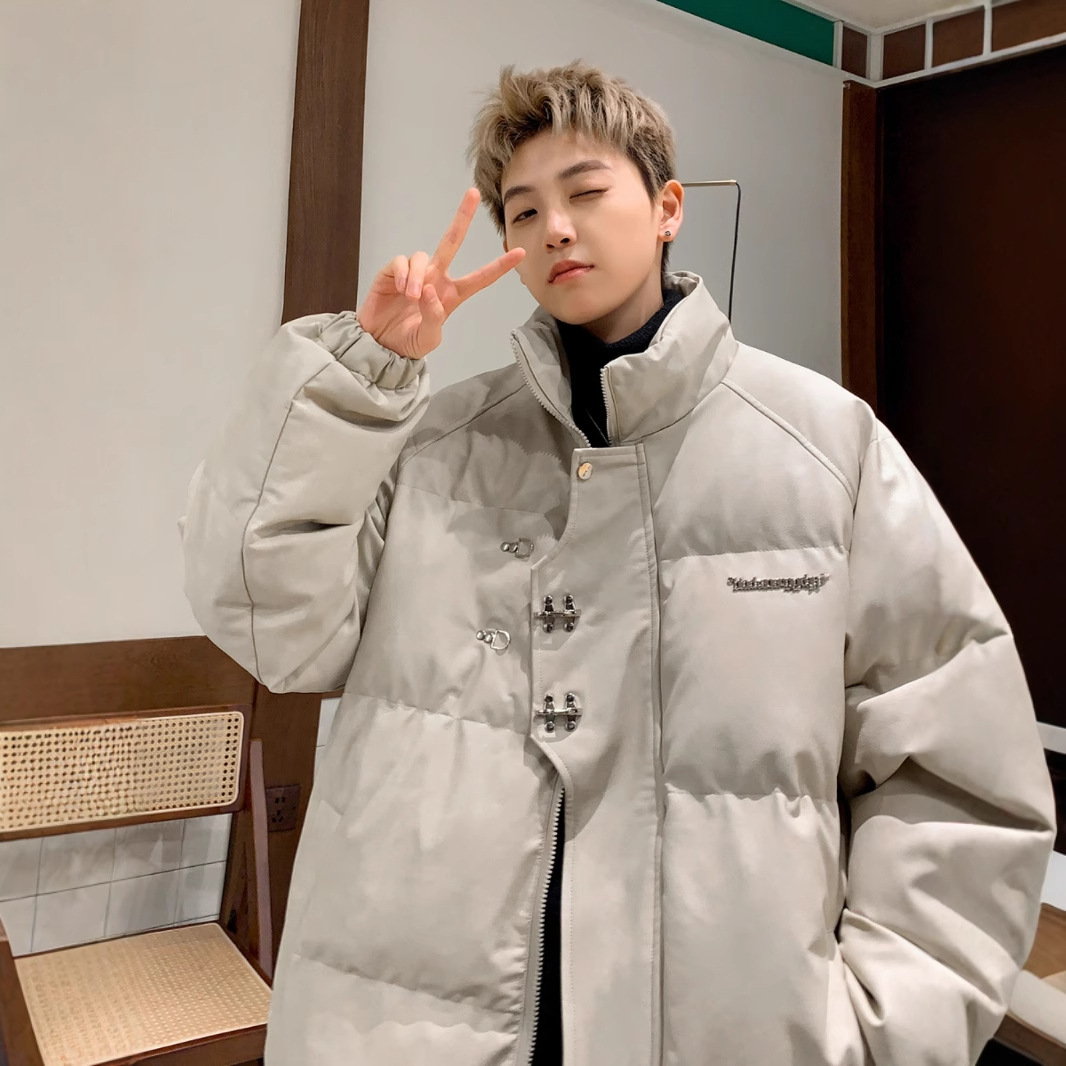 Leather Cotton-padded Jacket Men's Winter Metal Aircraft Buckle American Cotton-padded Jacket Thickened Warm Loose Bread Clothes Cotton