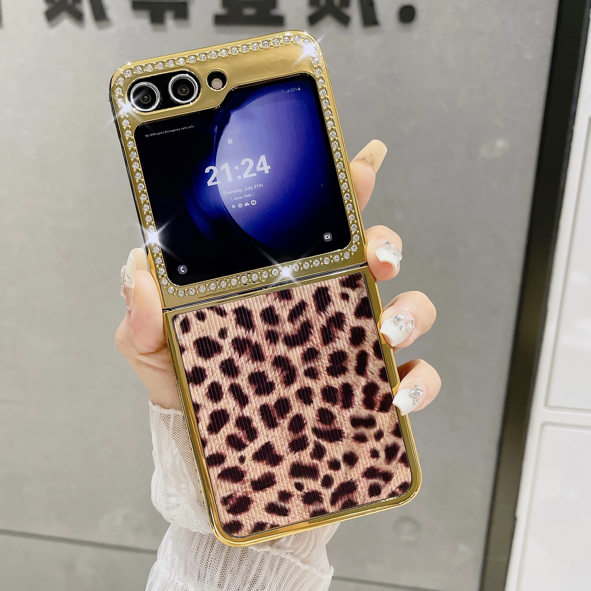 Suitable for Samsung ZFLIP5 Diamond Animal Skin ZFLIP3/4 Classic Leopard Pattern Folding Phone Case
