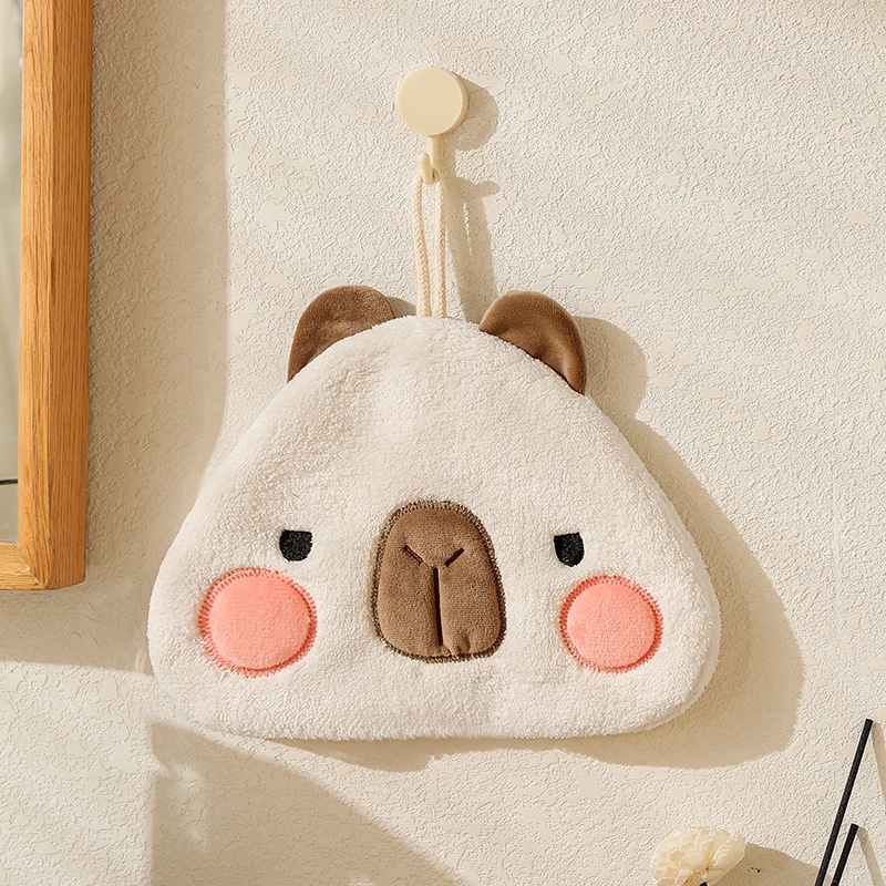 Lillian Capybara Coral Fleece Absorbent Quick-Dry Cartoon Children's Hanging Bathroom Hand Cloth Handkerchief Towel Cute