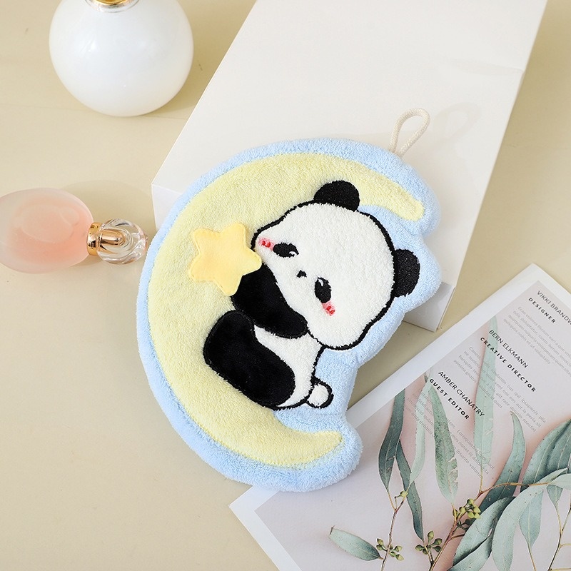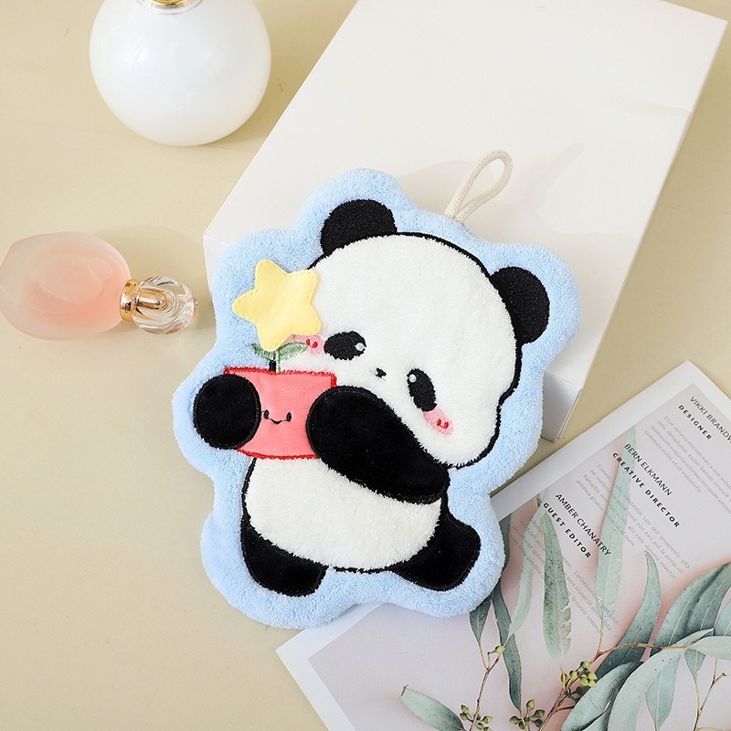 Lillian Children's Panda Hand Towel Hanging Coral Fleece Kitchen Cloth Bathroom Absorbent Quick-Dry Odorless Cute Handkerchief