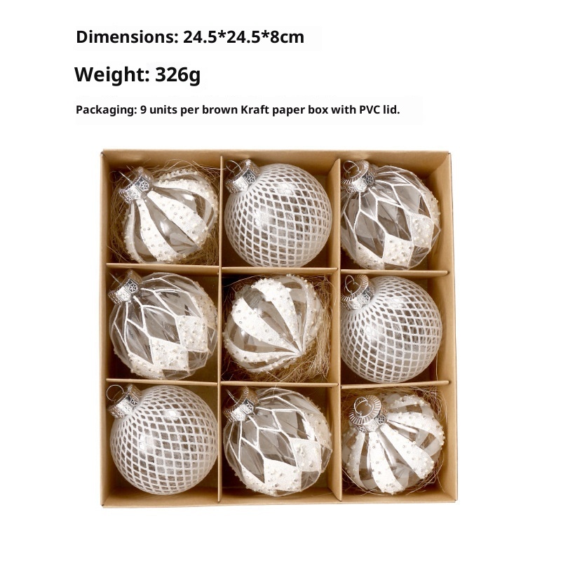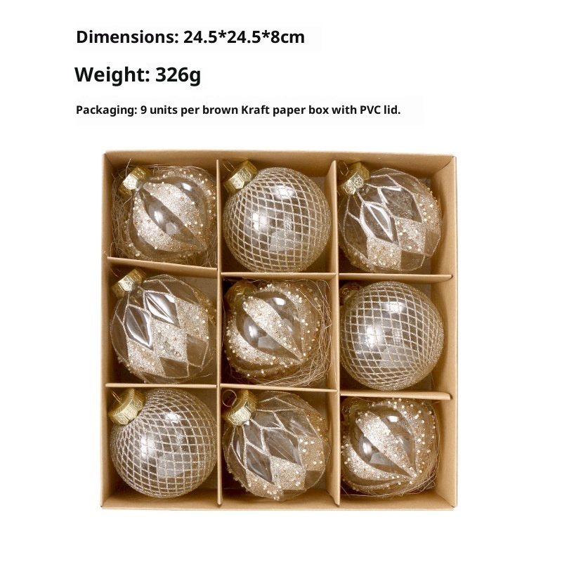 Item Number:YLPT0809,Material:Plastic,Color:Transparent white, light champagne gold,Is it a patented source product?:No,Brand:None,Specifications:24.5*24.5*8,Is IP authorization required?:No,Style:European style, European and American style, Nordic style, Christmas style, exquisite style,Suitable for Festivals:Christmas