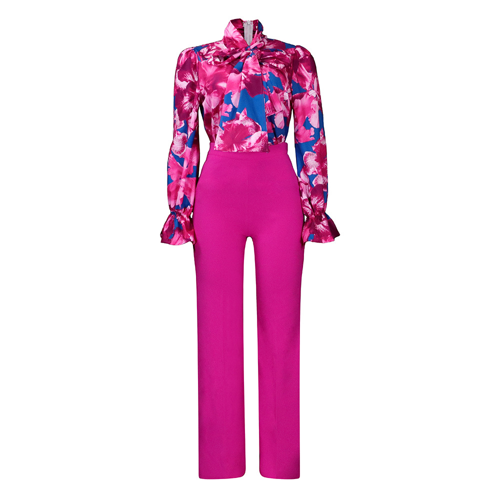 loose large size casual printed long-sleeved shirts wide-leg pants cross-border two-piece set