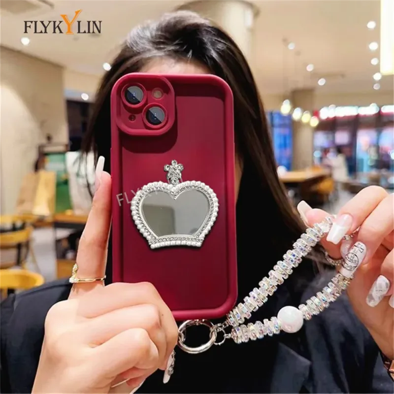 Luxury Stylish Crown Mirror Phone Case For Samsung A53 A52 A32 A13 A23 A33 A73 A12 A22 A72 4G 5G Soft Silicone With Bracelet