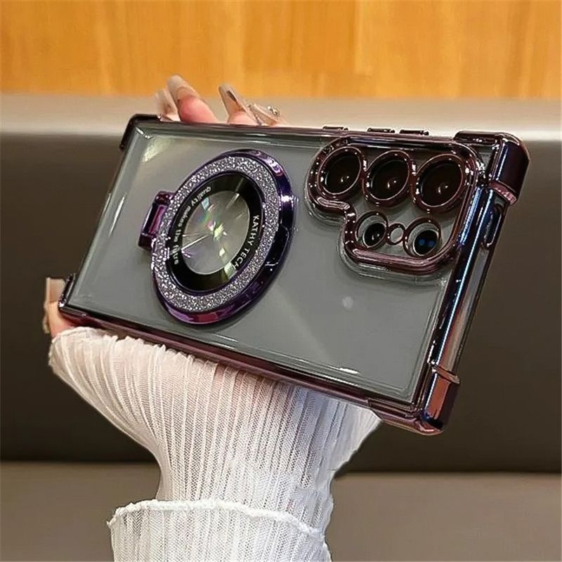Magnetic Bling Glitter Phone Ce For Samsung Galaxy S25 S24 S23 S22 S21 S20 Ultra Plus Transparent Silicon