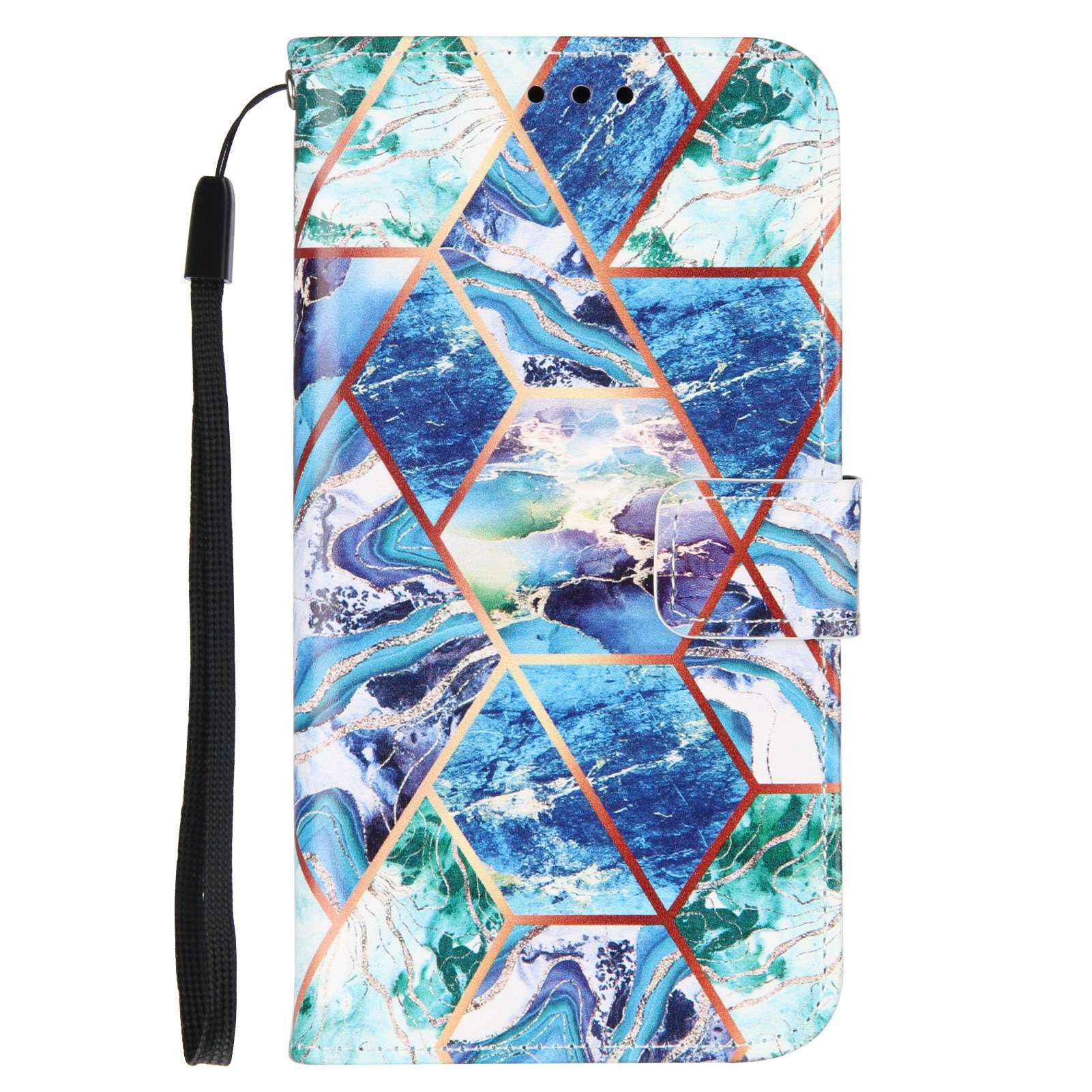 Suitable for iPhone 14 Promax electroplated splicing marble flip cover leather case, Apple 13 card holder case