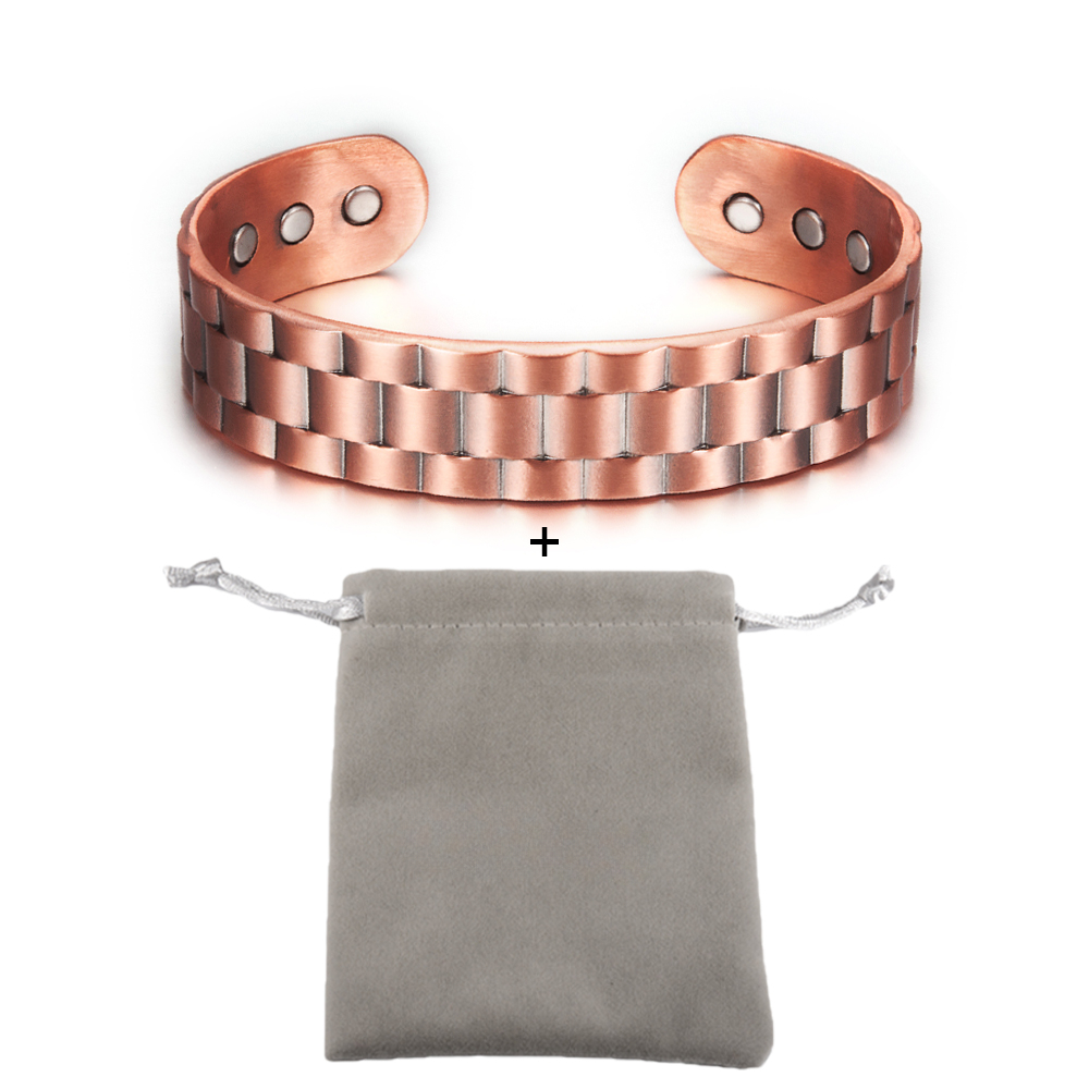 Meathly Magnetic Pure Copper Bracelets Men Women Vintage Adjustable 15.5mm Wide Bangles Health Energy Jewelry for Arthritis