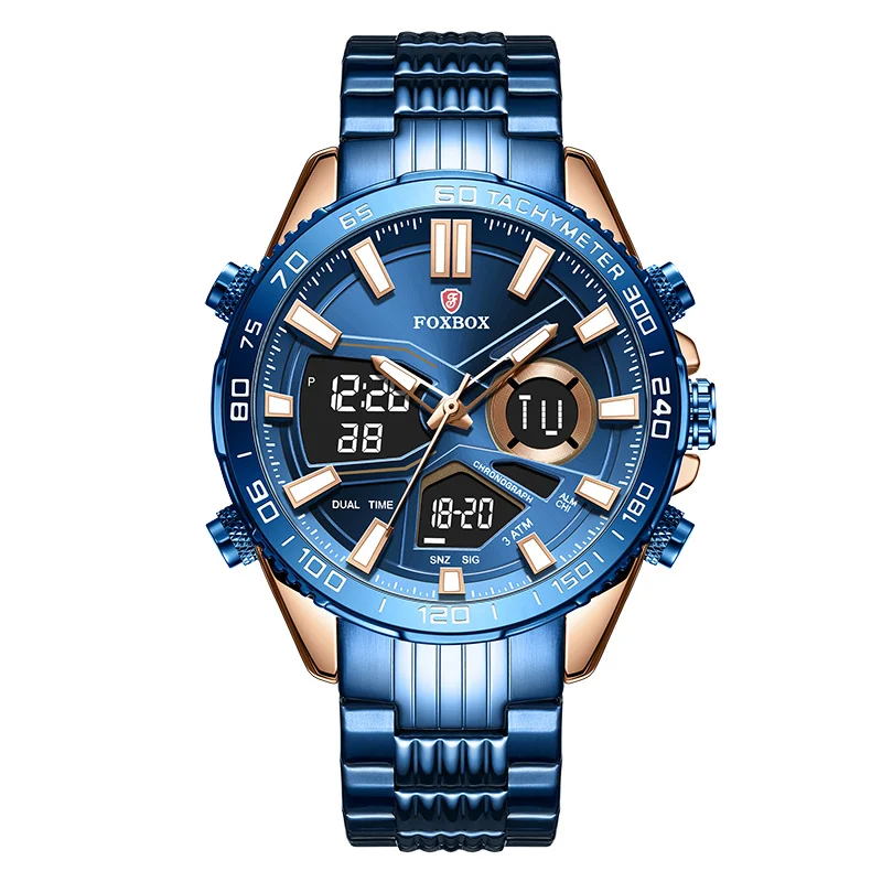 Men Watches Quartz Digital Male Clock Military Sport Blue Stainless Steel Man's Wrist watch