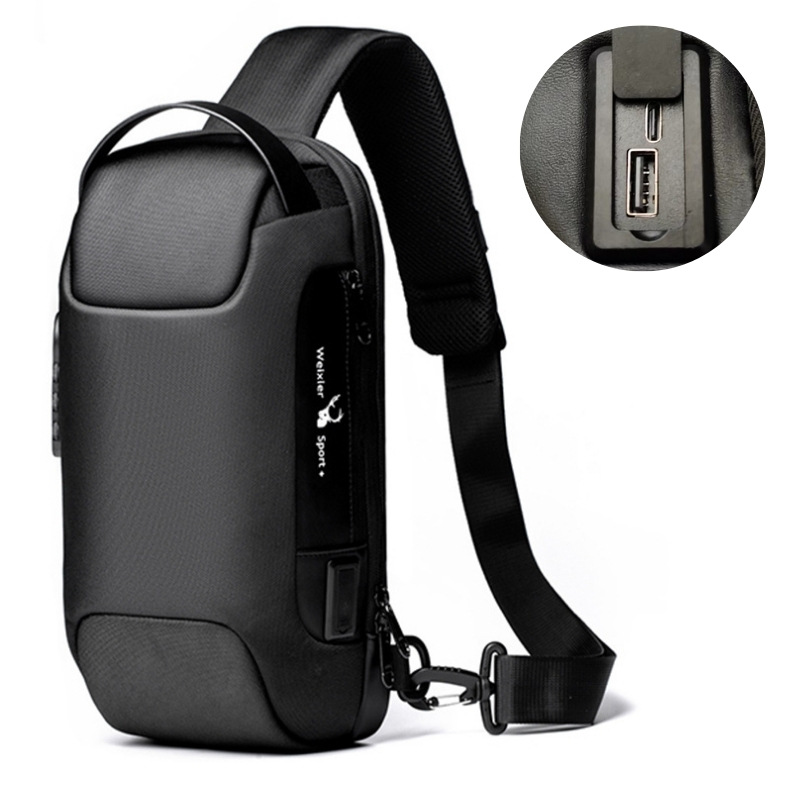 New Chest Bag for Men's Business Commuting Crossbody Bag, Single Shoulder Bag for Men's Chest Bag, USB Charging, Large Capacity Oxford Bag