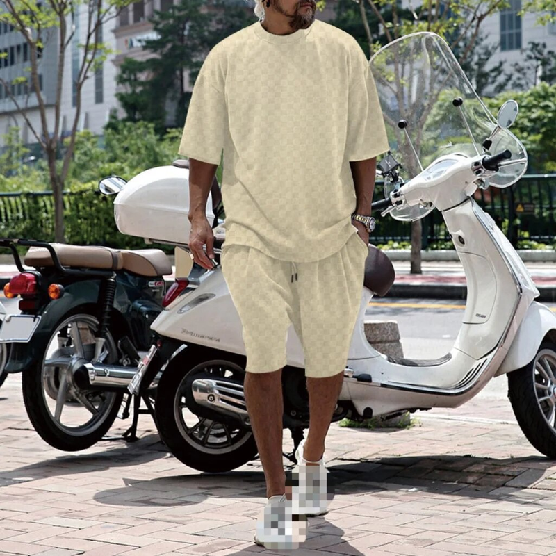 men's casual shorts set, 2024 summer new jacquard plaid short sleeved t-shirt loose oversized straight leg