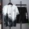 Men's Ice Silk Short-Sleeved T-Shirt Suit Men's Large Size Set Casual Handsome Matching Clothes T