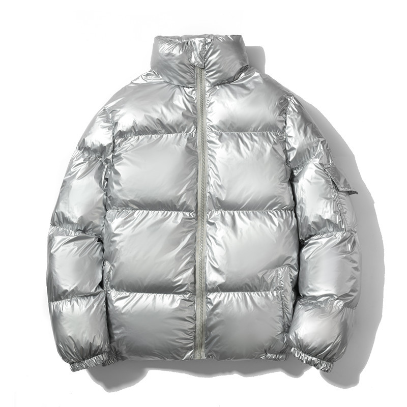2020 Winter New Men's Solid Color Bright Face Trendy Reflective Loose Collar Thick Cotton Jacket for Men