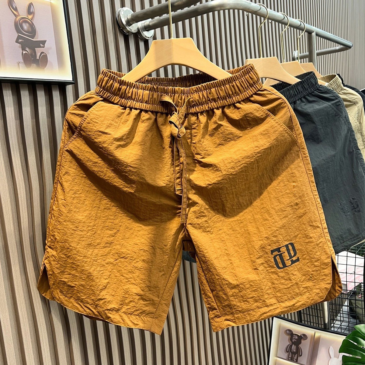 Men's Quick Dry Cargo Shorts Summer Style Thin Five Point Design Casual Basic Trendy Beach Shorts mid Waist Drawstring