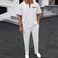 Men's Waffle Knit Lapel Polo & Shorts Set - Color Block Casual 2-Piece Outfit
