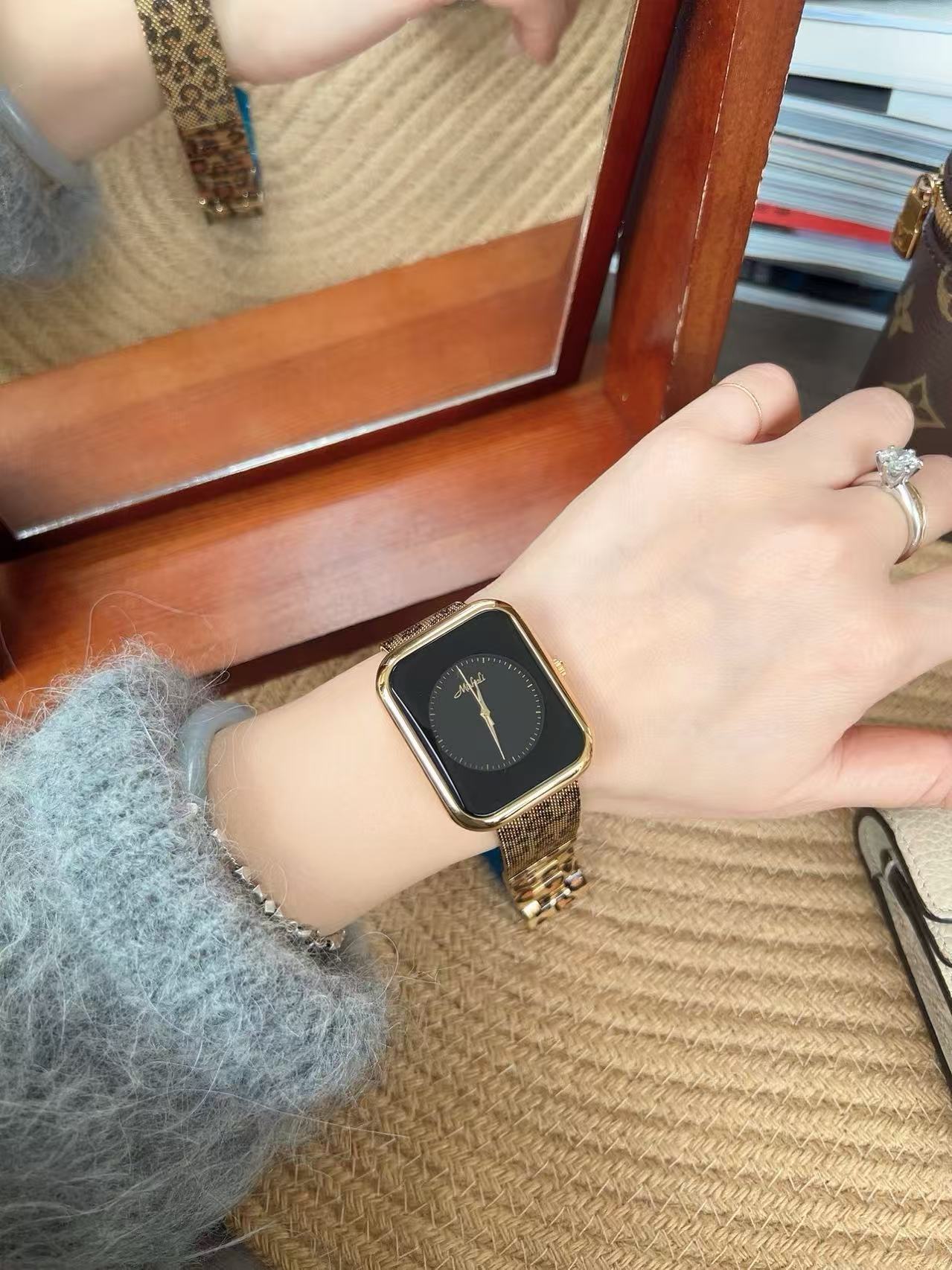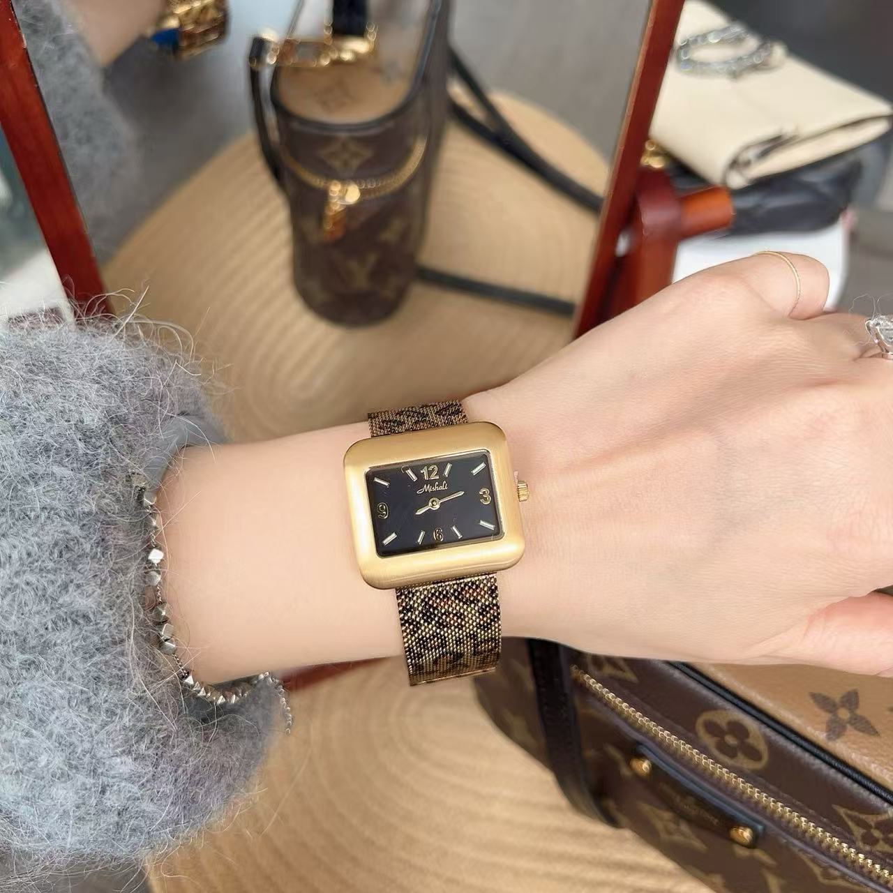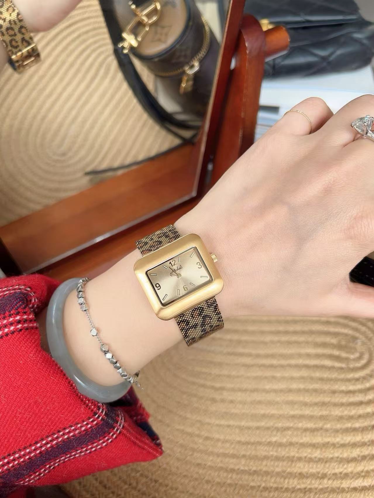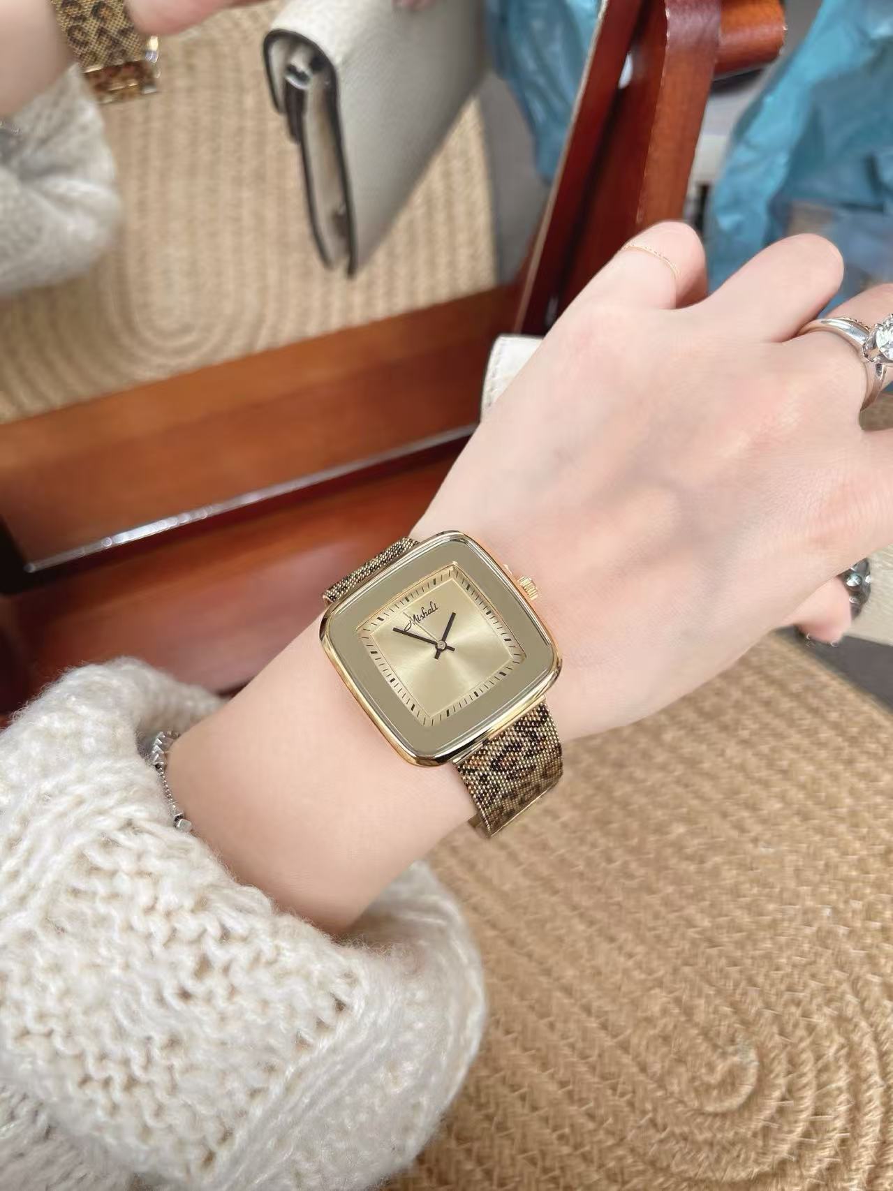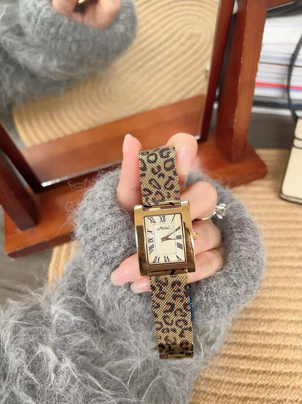 Mishali Women's Leopard Print Strap Large Dial Casual Fashion Watch