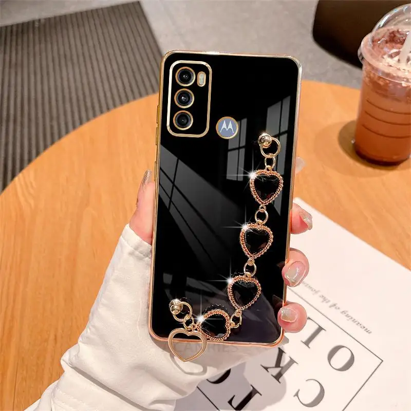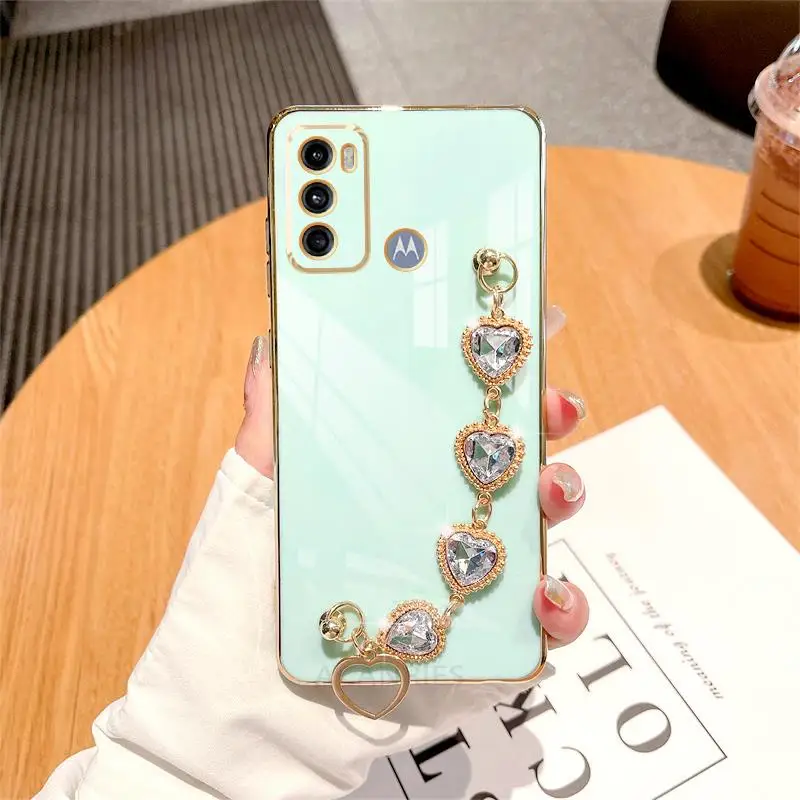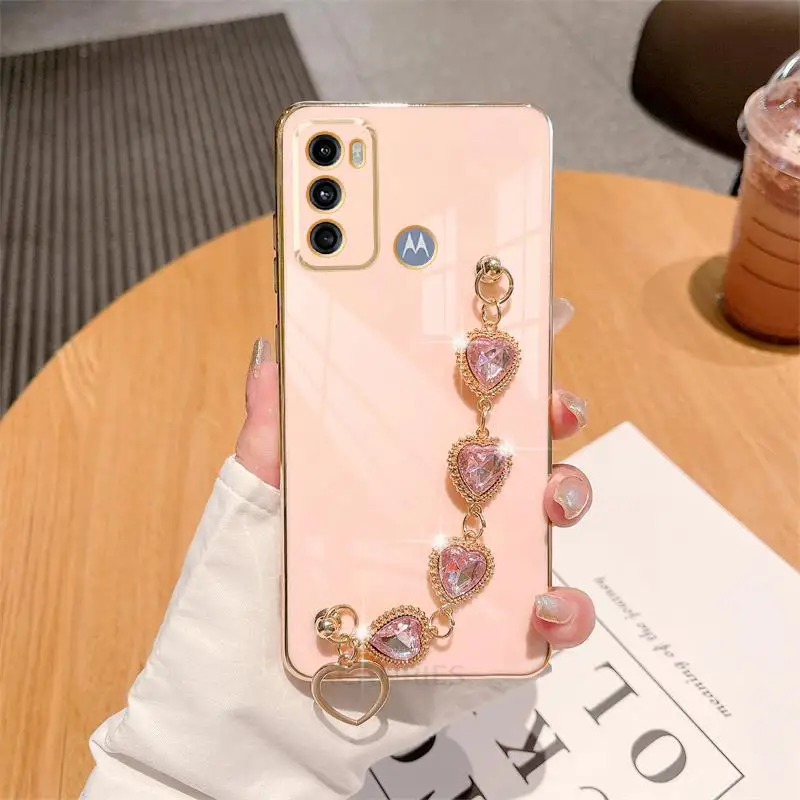 Motog60 Chain Wrist Case For Motorola Moto G60 G50 G20 G30 G10 G22 G52 G53 G13 G23 G73 G9 G8 E7 Plating Silicone Cover