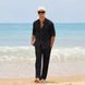 New Suit Solid Color Lapel Shirt Cardigan Two-Piece Set Light Mature Casual Beach Men's Outfit