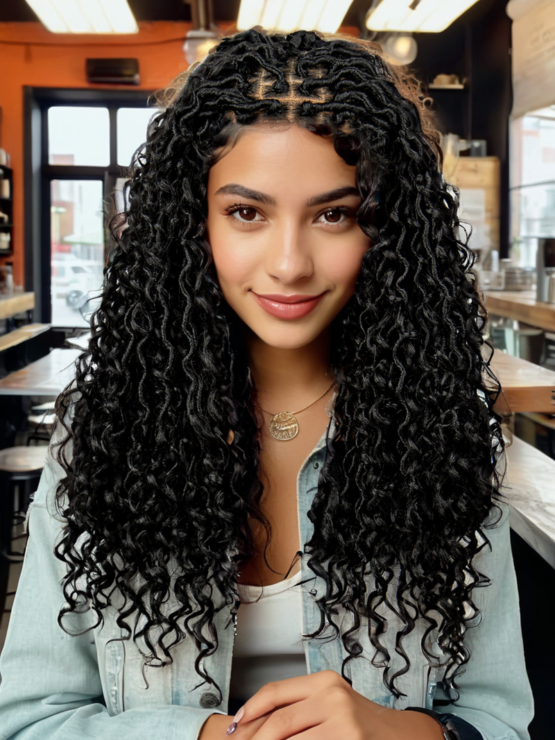 New 9*6 lace front braid head with wig 200% density Long braid mixed wave shape chemical fiber wig head cover