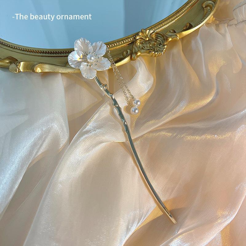 New Chinese Gardenia Metal Hairpin Female Style Ancient Style Pan Hair Hairpin Chinese Style Senior Sense Hanfu Fringe Hair Hairpin