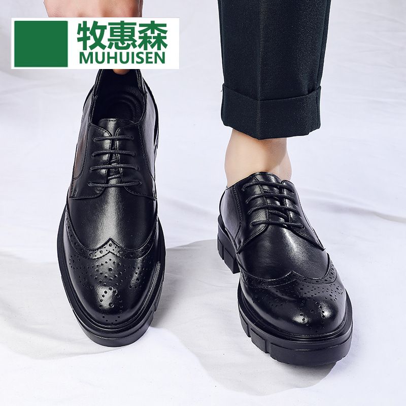 New Formal Business Brogue Lace-up Derby Leather Casual Spring Soft Sole Men's Shoes