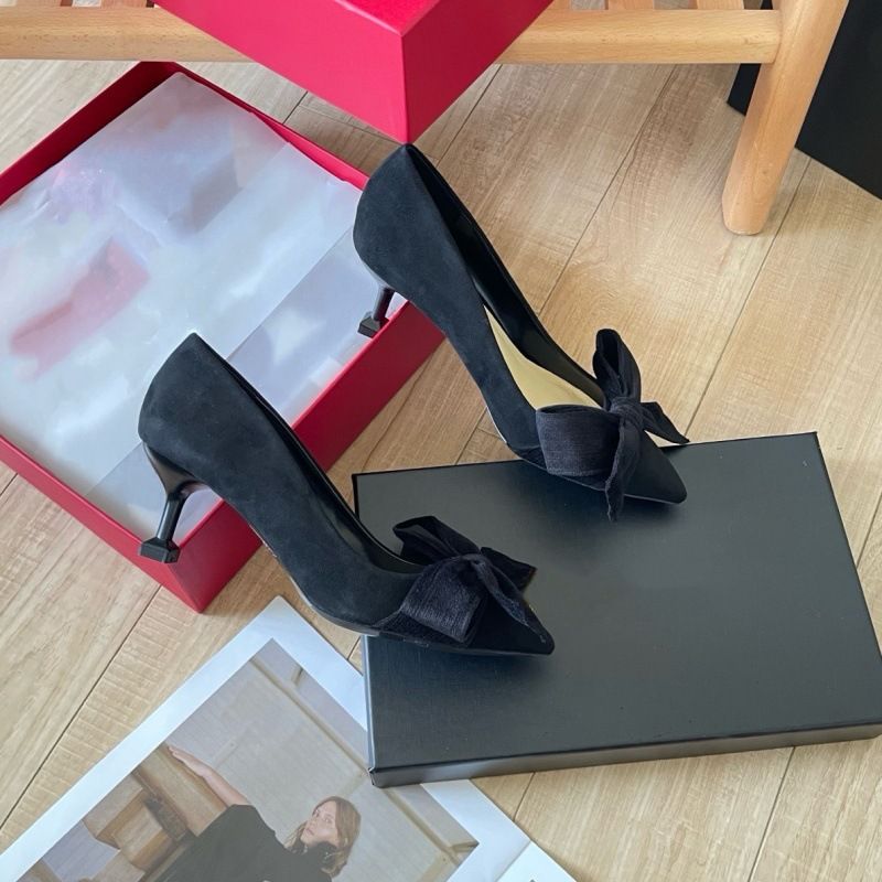 New French 2026 Style High Heels , Thin Pointed Toe Versatile Casual Elegant Black Bow Small Heel Single Shoes For ,
