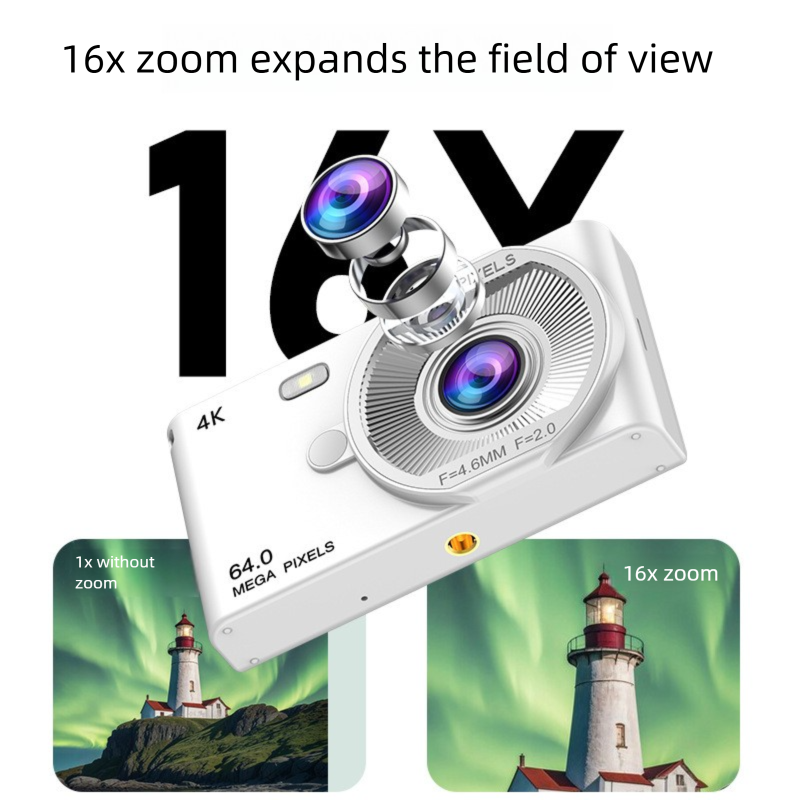 New High-Definition CCD Digital For Students, 16x Zoom, Selfie Capable, Transfers To Phone, Beauty Camera