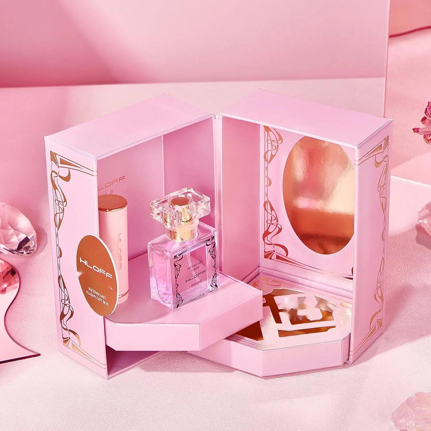 New Hot Perfume HLOFF Fancy Lipstick Perfume Beauty Makeup Gift Box for Valentine's Day Birthday Gift Lipstick Perfume Set