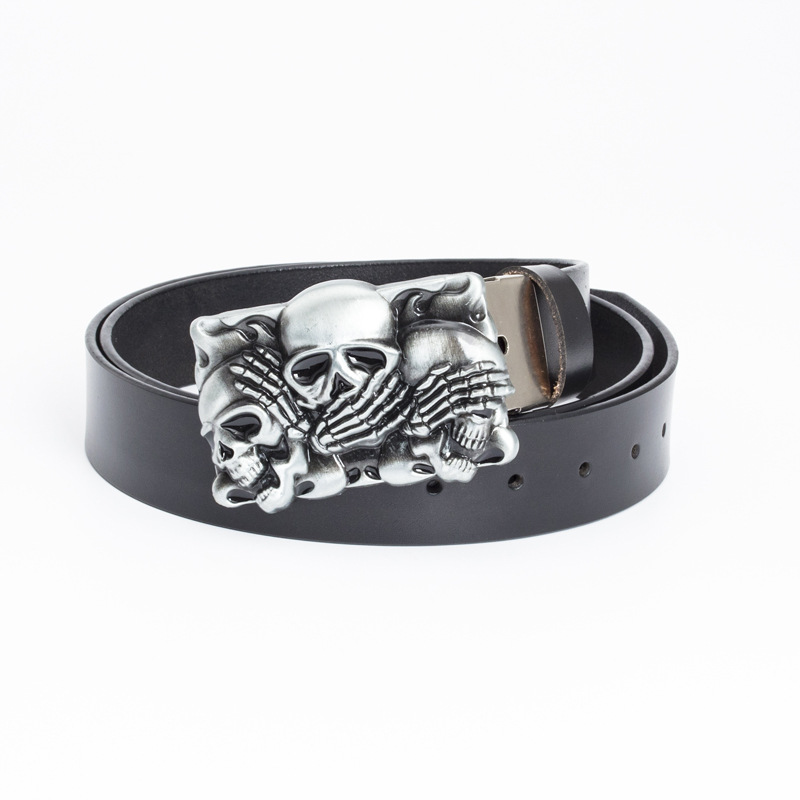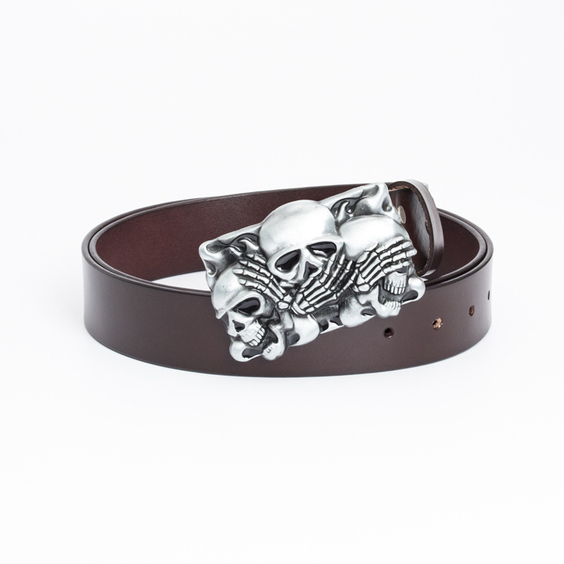 New Hot Selling Cowhide Belt Casual and Fashion Korean Version Belt Punk Skull Head Personalized Men's Trend Customized Belt for Men