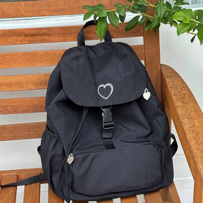 New Korean Women's College Students Large-capacity Class Backpacks, Heart-shaped Embroidery Backpacks