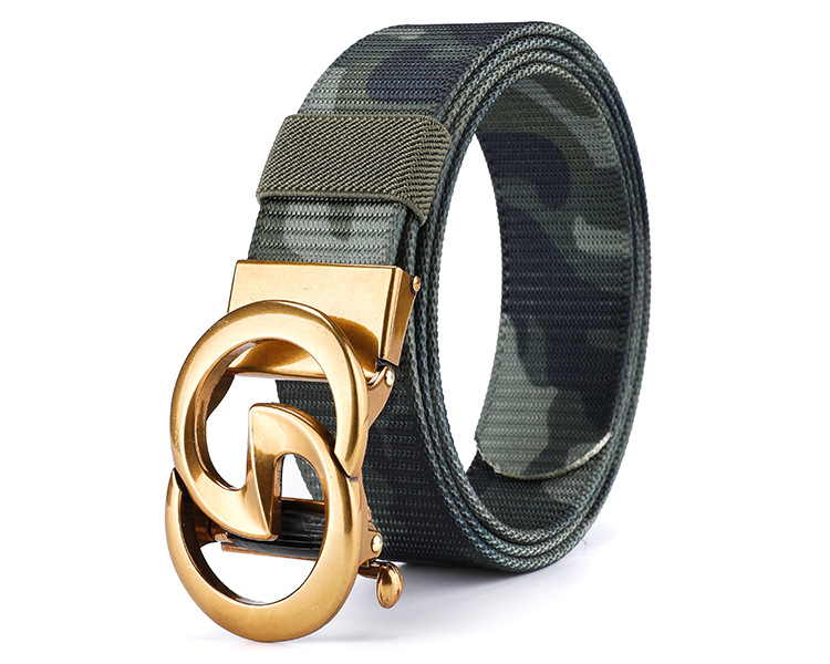 New Men's Automatic Buckle Canvas Belt Without Holes Thickened Nylon Waist Belt Simple Casual and Versatile for Business The Belt Can Be Cut Short