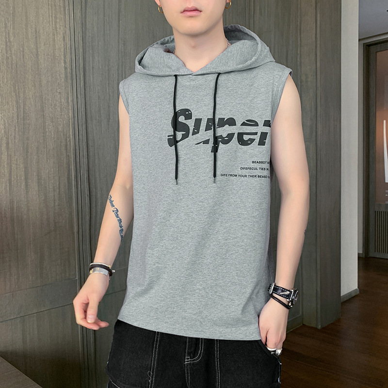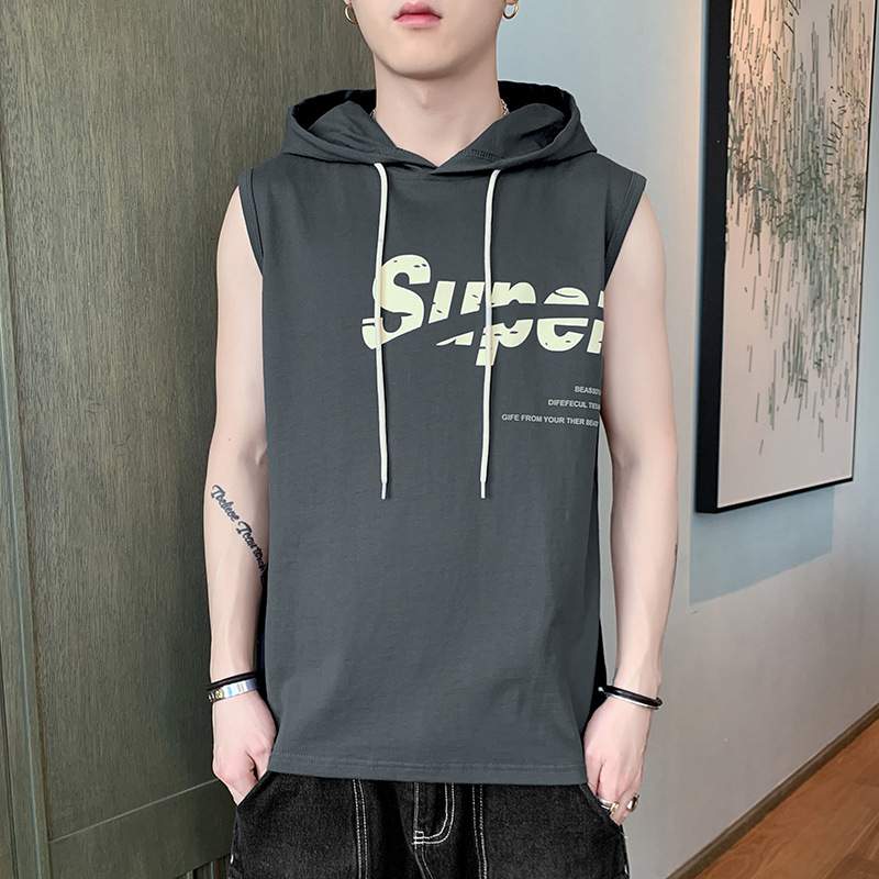 New men's sleeveless T-shirt top, camisole, summer sports vest, pure cotton round neck printed casual clothes