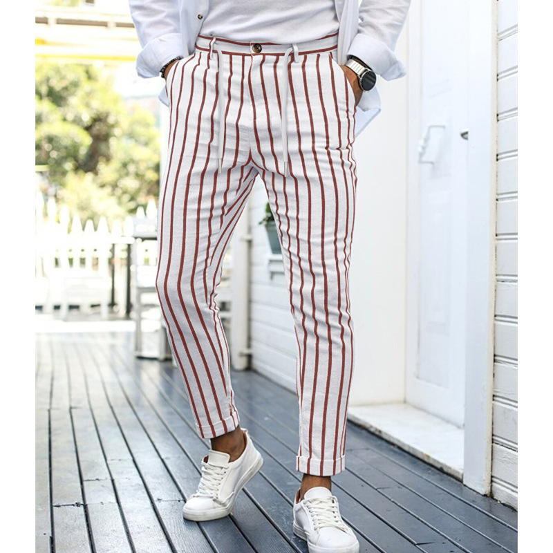 New Men's Striped Folded Casual Pants Business Formal Dress Suit Pants Fashion Drawstring Street Trousers Male