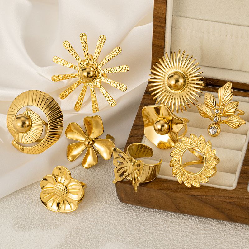 New Simple and Unique Floral Ring for Women, Fashionable Geometric Design, Non-Fading Knuckle Ring
