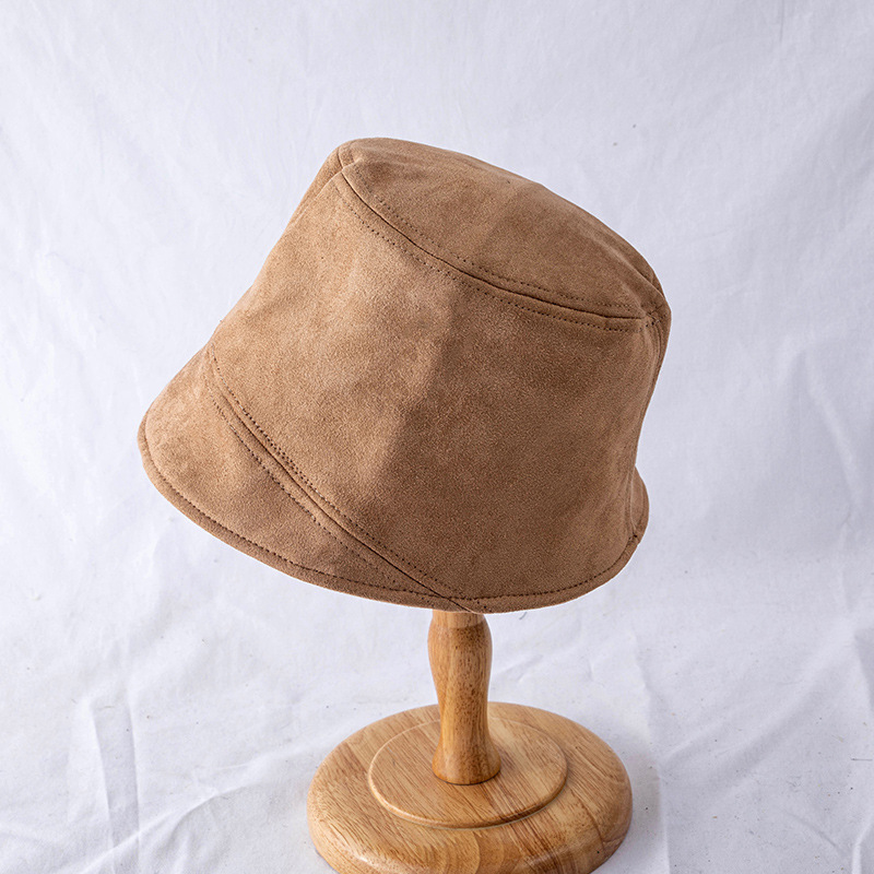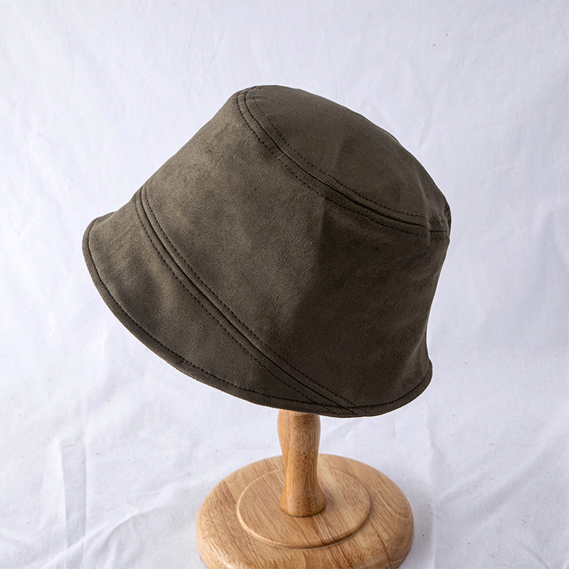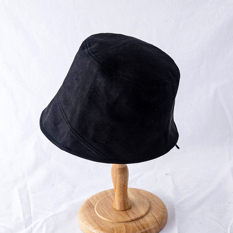 New Suede Fisherman Hat, Black Japanese Retro Hat, Women's Bare Face, Big Head Circumference, Autumn And Winter Face Enhancing Small Basin Hat
