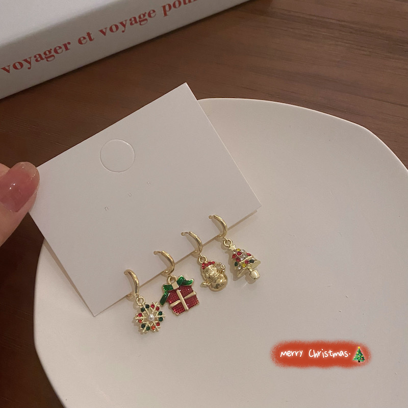New Super Flash Ear Button Set For Women's Christmas Tree Gift, Winter Cute Snowflake Colorful Earstuds