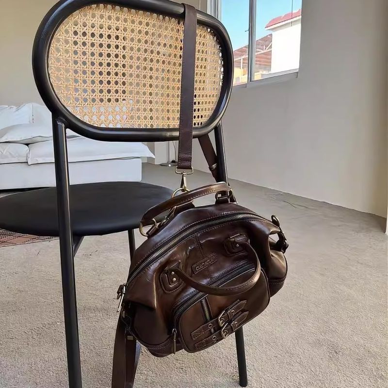 Oil Leather Heavy Duty Biker Style Handbag 2025 Spring Summer New Three Way Tote Crossbody Backpack Backpack Fashion Versatile Casual Daily