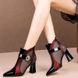 p7New spring and summer high-heeled mesh boots, hollow mesh sandals, thick heels, fashionable and versatile women's shoes, sandals, women's boots