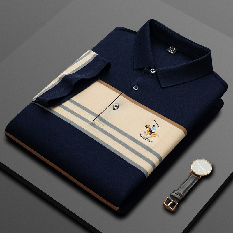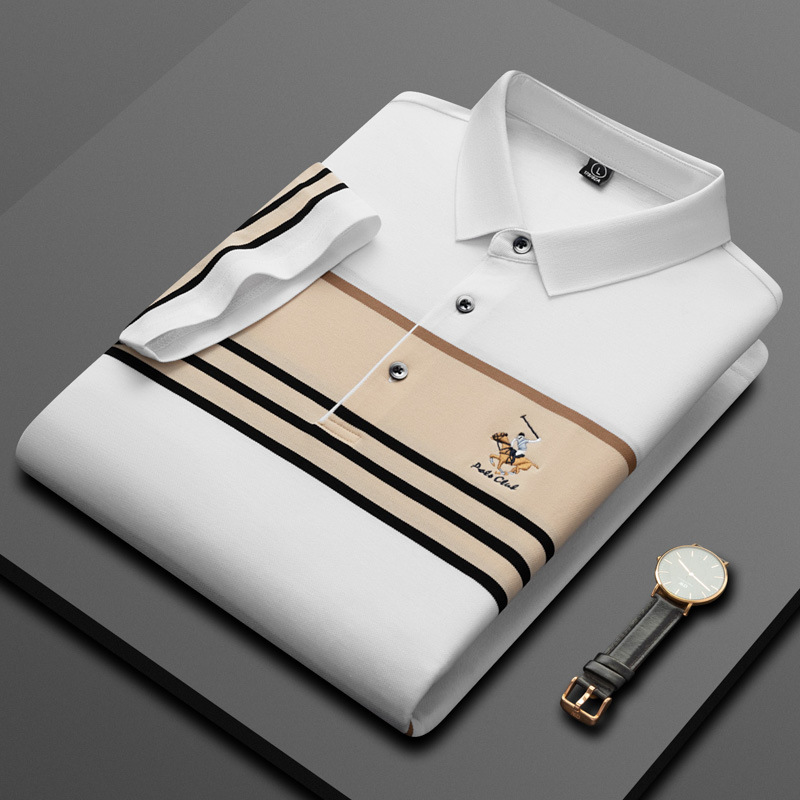 Pearl Cotton Shirt Short Sleeved T-Shirt With Lapel Collar, Casual Stripes, Youth Fashion Polo Shirt, Men's T-Shirt