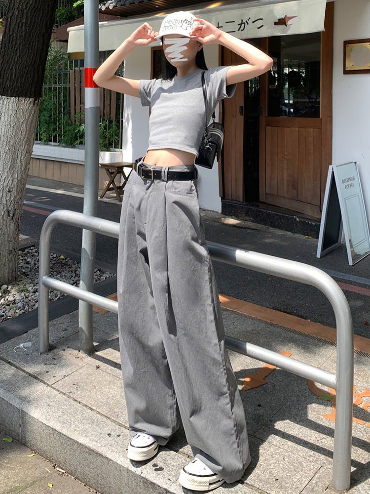 【Unshipped Instant Refund】Plus Size American Style Gray Wide-Leg Jeans for Women, Autumn High-Waisted Straight Loose Casual Design Floor-Length Pants Trendy