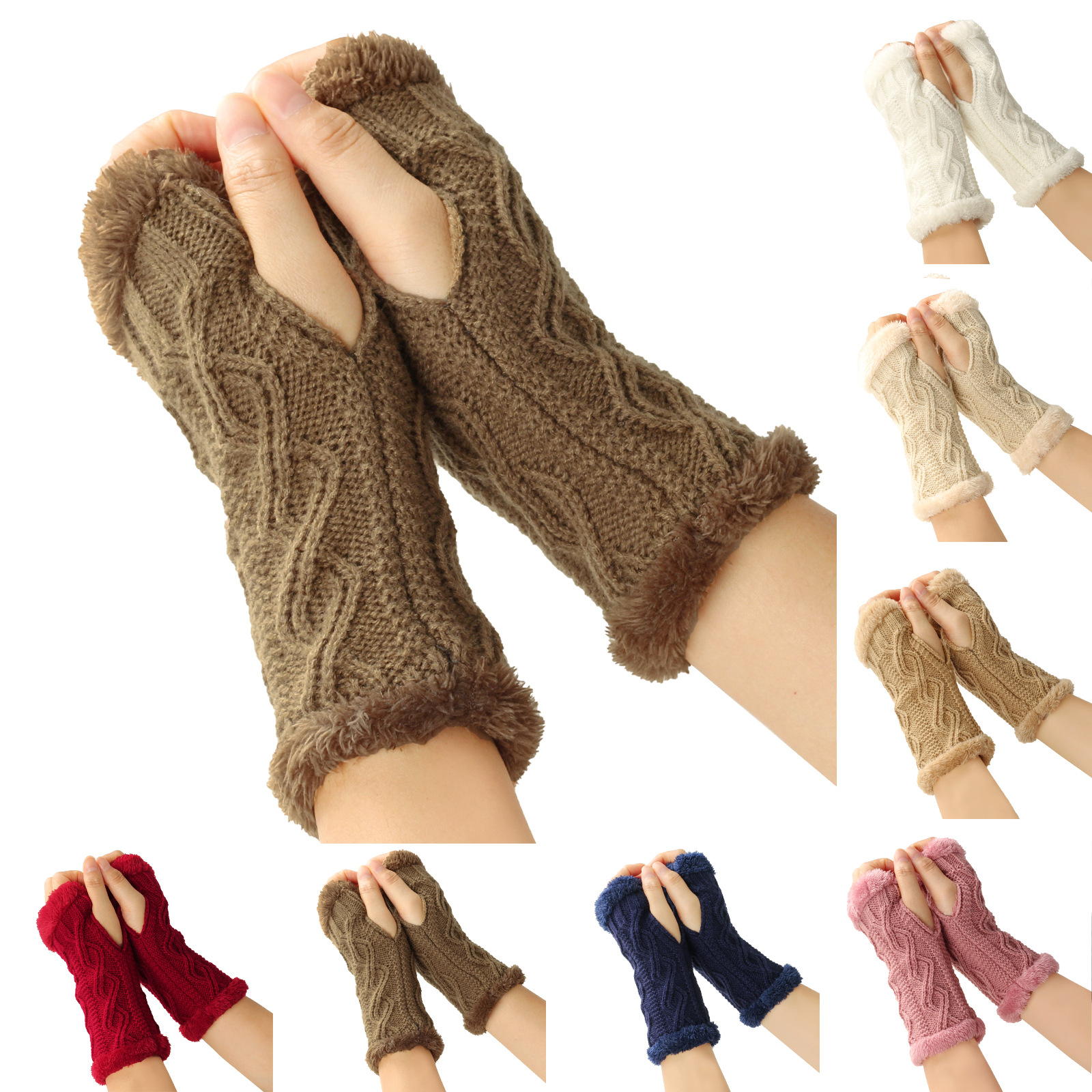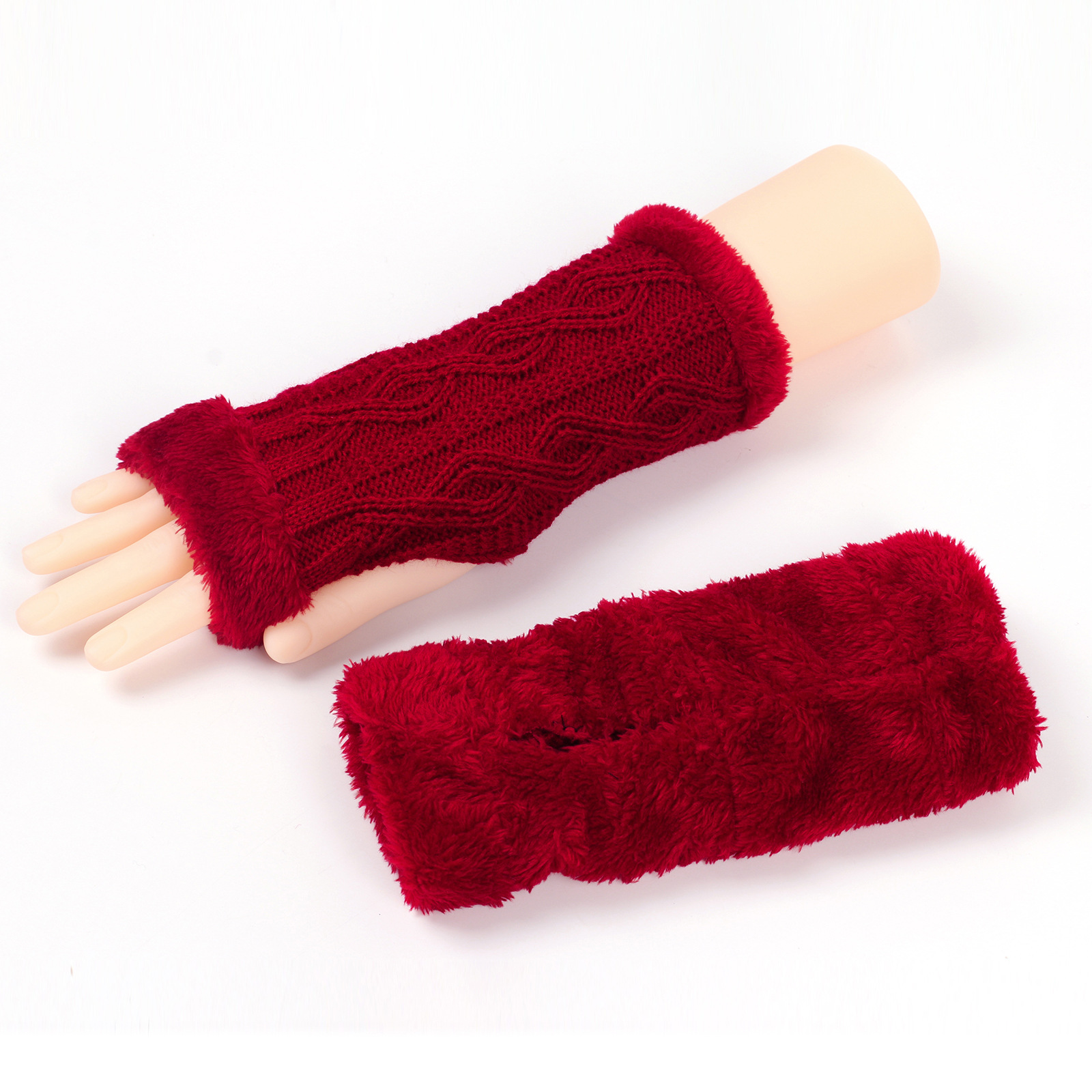 Plush And Thickened Gloves, Diamond Shaped Short Knitted Fingerless Plush Sleeves, Autumn And Winter Warm Plush Gloves