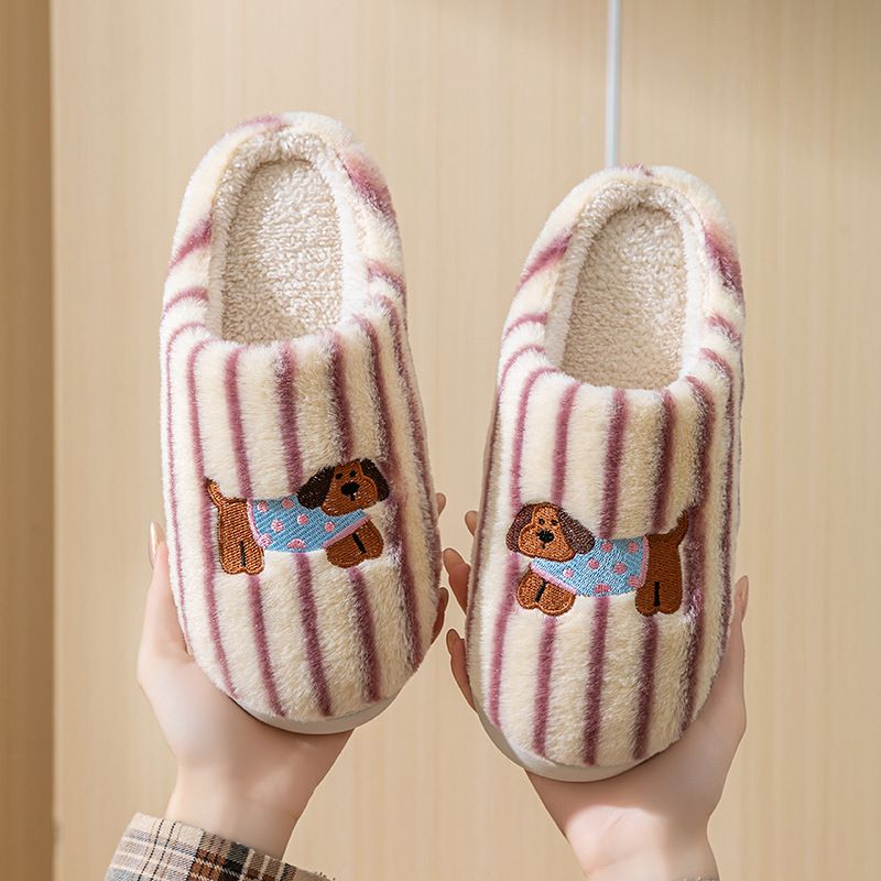 2025 Fall/Winter New Cartoon Homewear Couple's Matching Plush Women's Cotton Slippers Versatile