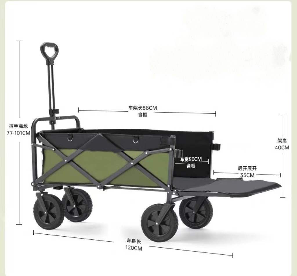 Portable Foldable Large Capacity Small Outdoor Residential Card Design Stall Camping Cart