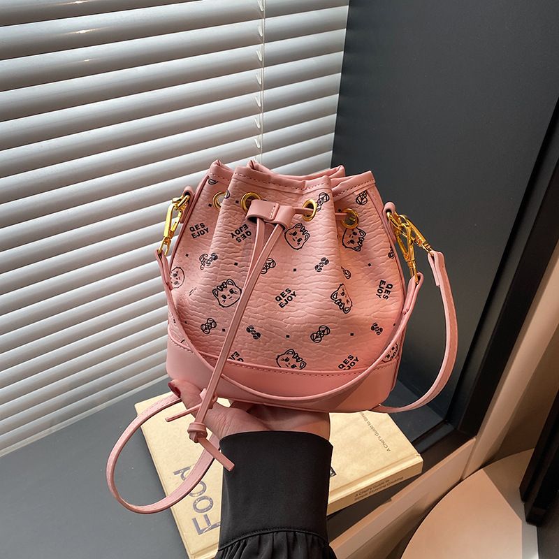 Printed Drawstring Bucket For Women 2025 New Niche Handbag Fashionable Spring Summer Shoulder Crossbody Bag