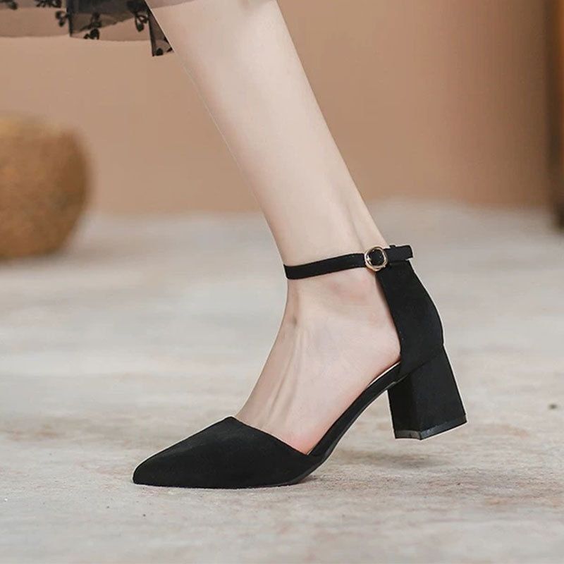 Professional Pointed High Heels One Strap Chunky Mid Heel Single Shoes Fairy Style 2025 Spring New Closed Toe Sandals
