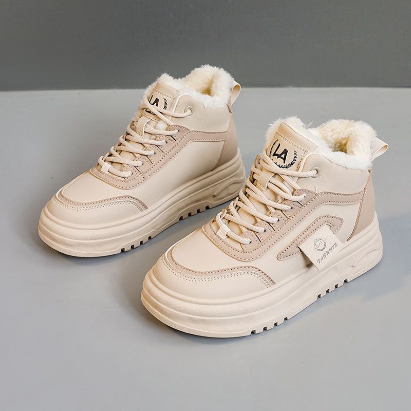 RD7343 New 2024 Autumn/Winter Korean Edition Veet Snow Boots Women's Middle Top Color blocked Height Increasing Casual Cotton Shoes for Warmth