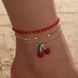 Red Beaded Multi-layer With Rhinestones Cherry Anklet Three-piece Set