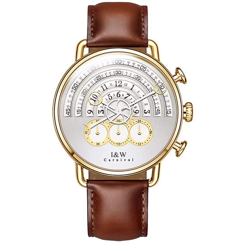 Brand Name : Carnival Carnival Of The/CarnivalModel Number : Sport Watch C96Feature : Shock Resistant,Chronograph,Water-ResistanceOrigin : Mainland ChinaStyle : SPORTCertification : NoneMovement : QuartzDisplay Type : NumberlessCase Material : Stainless SteelBoxes & Cases Material : LeatheretteDial Window Material Type : Sapphire CrystalDial Diameter : 40 to 44 mmCase Shape : RoundBand Material Type : LeatherBand Width : 20 to 24 mmBand Length : 21cmClasp Type : BuckleWater Resistance Depth : 3BarItem Type : Quartz WristwatchesDisplay Type : NeedleCase Thickness : 11mmBattery Included : YesBand type : LeatherHign-concerned Chemical : NoneMovement origin : Jp(origin)Wholesale : Support