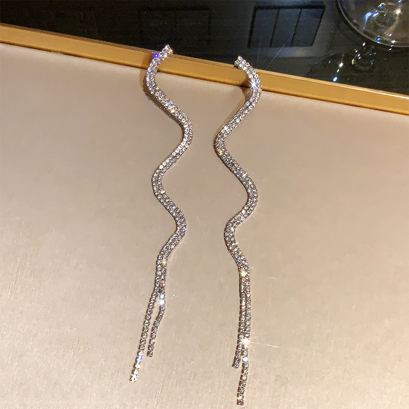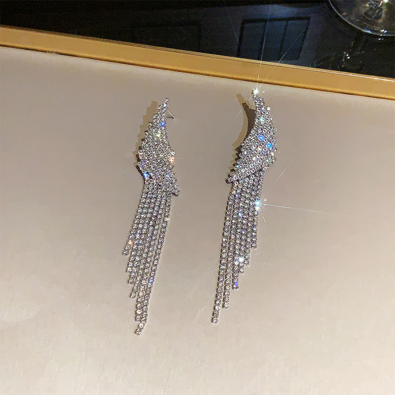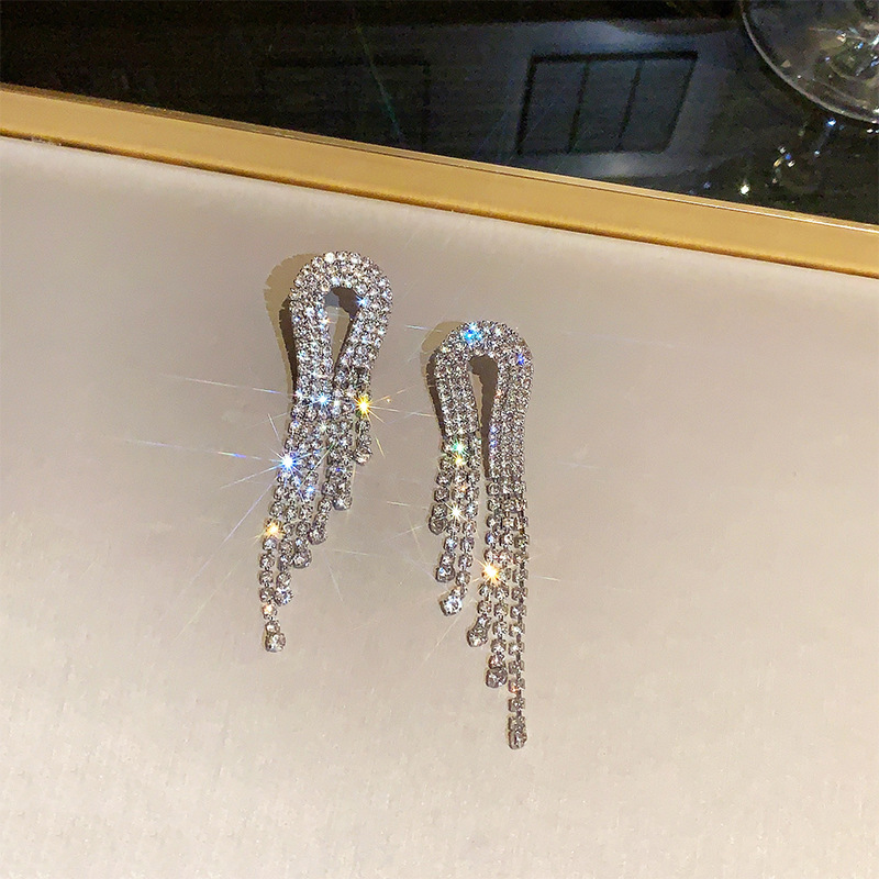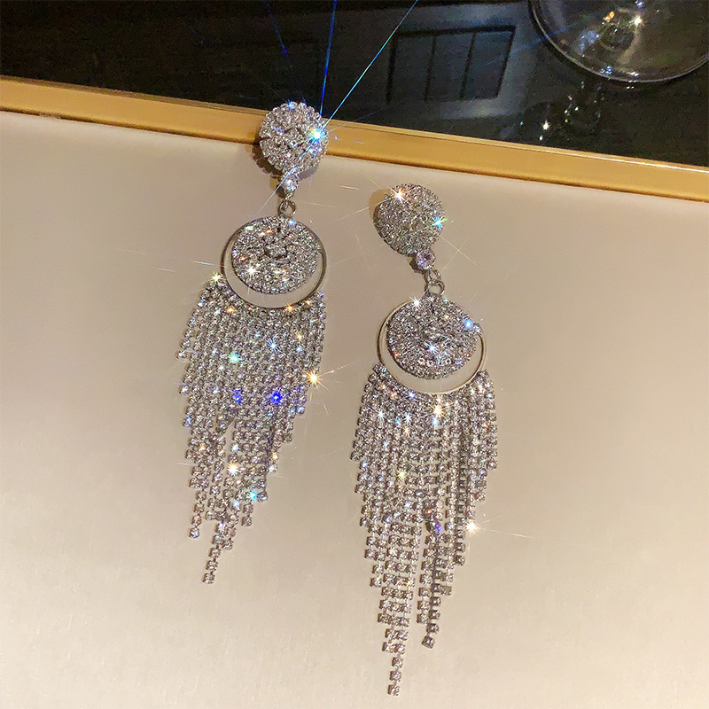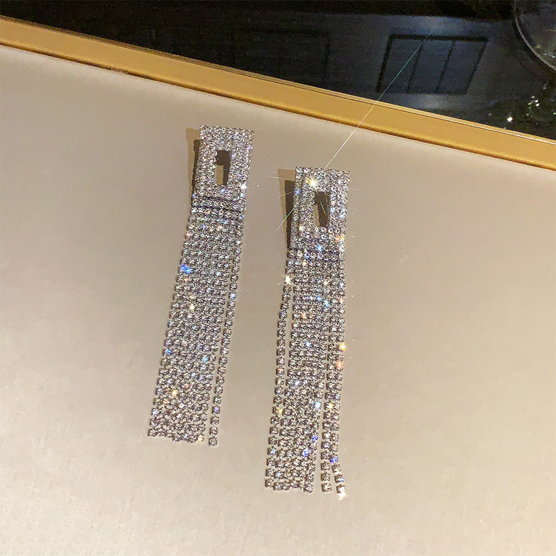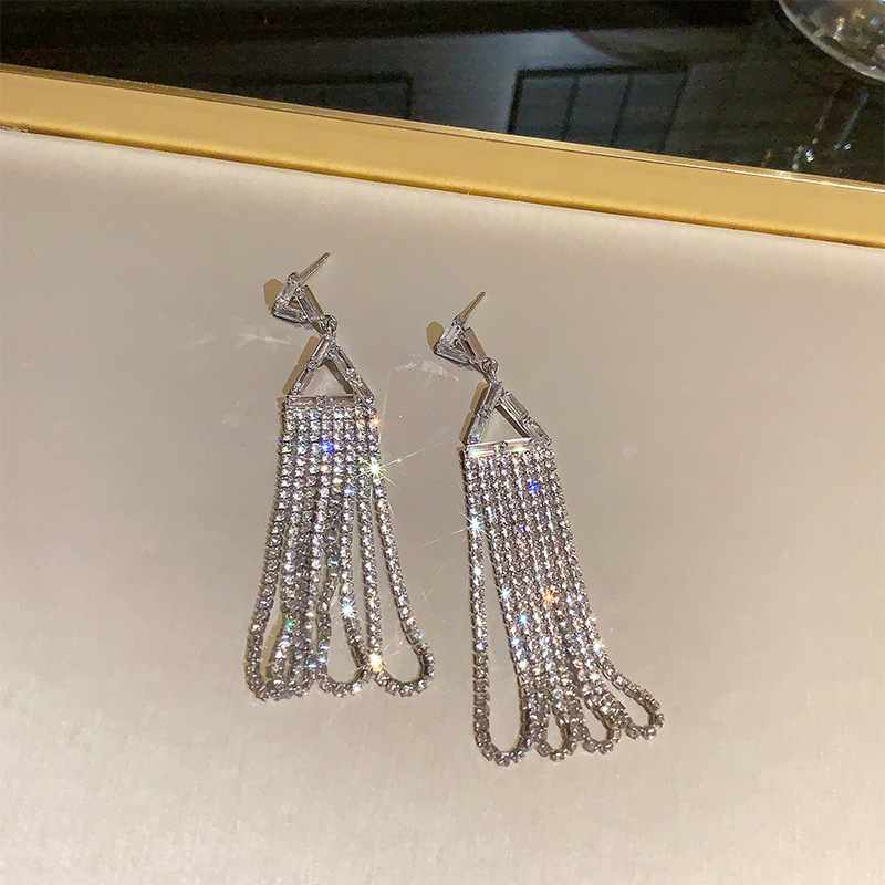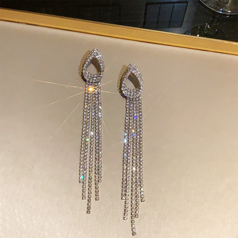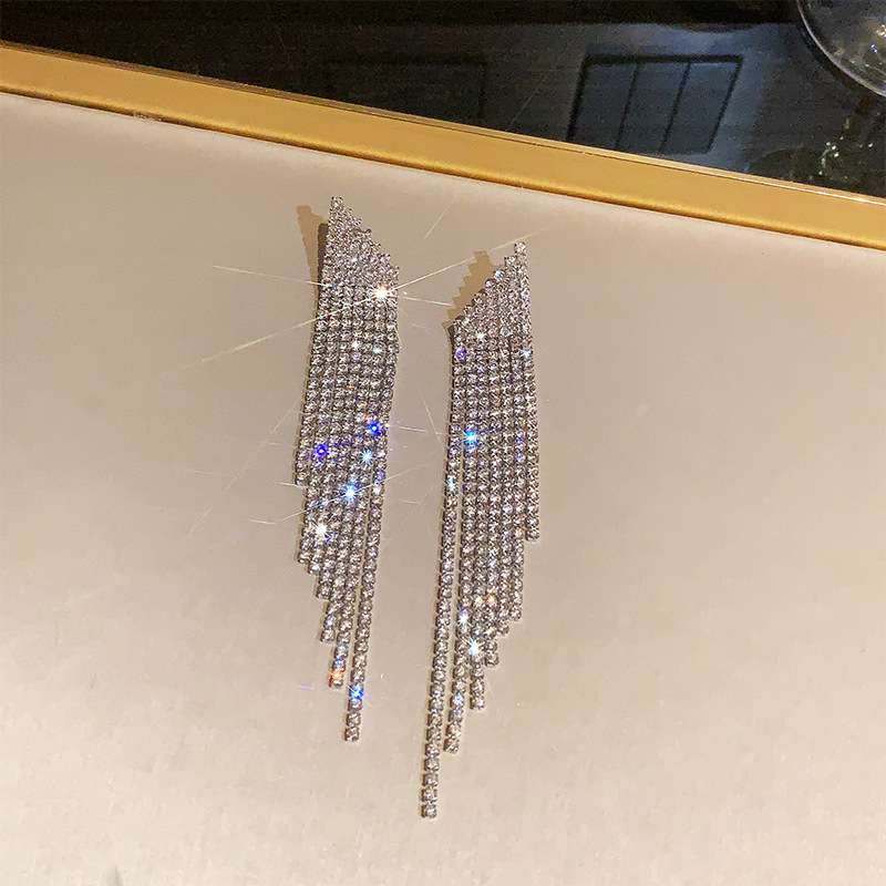 Retro full diamond long tassel earrings for women in Europe and America, exaggerated temperament, earrings, high-end feeling, light luxury earrings