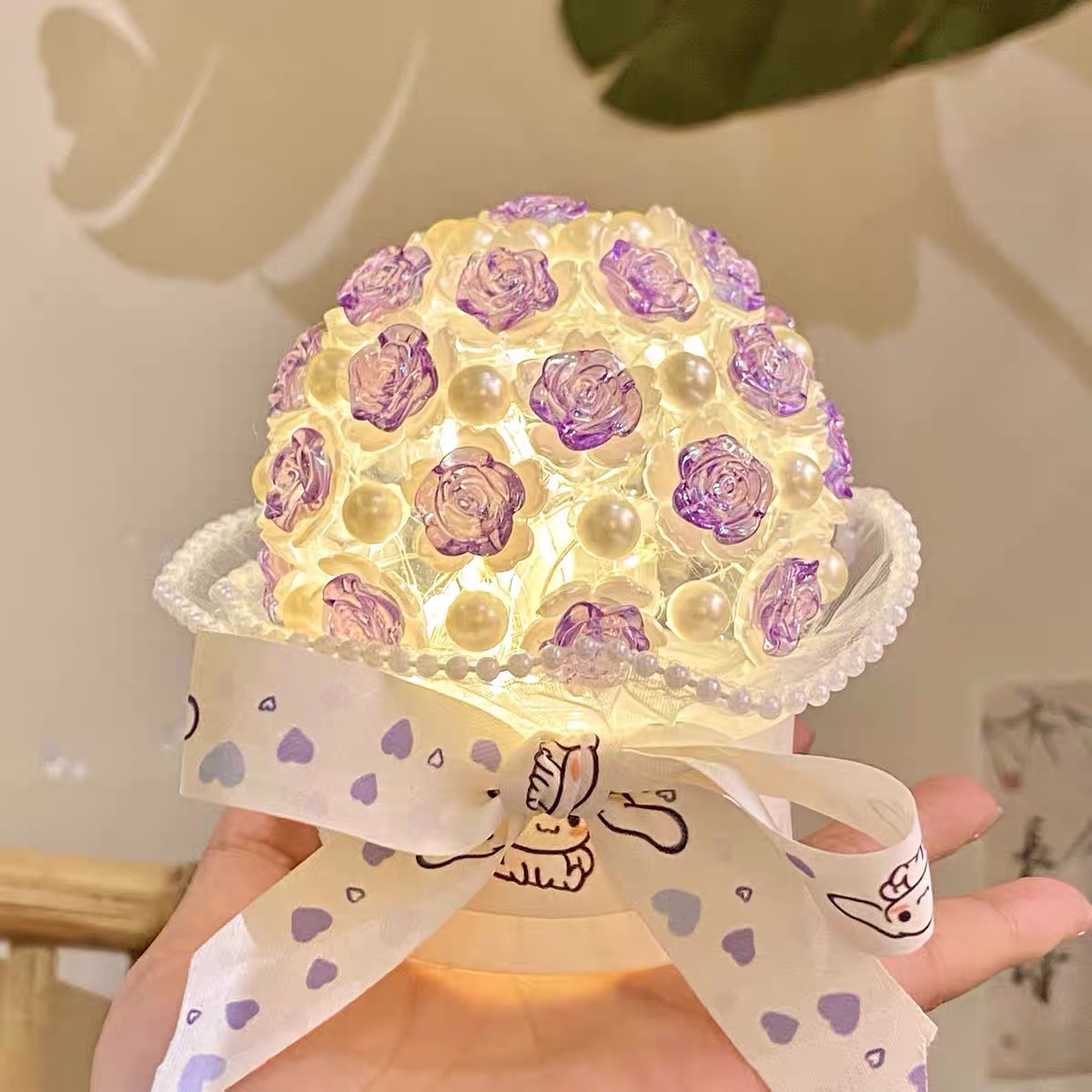 Girlish Heart Artificial Rose Handheld Flower Desktop Atmosphere Night Light 520 Qixi Festival Handmade DIY Ornament For