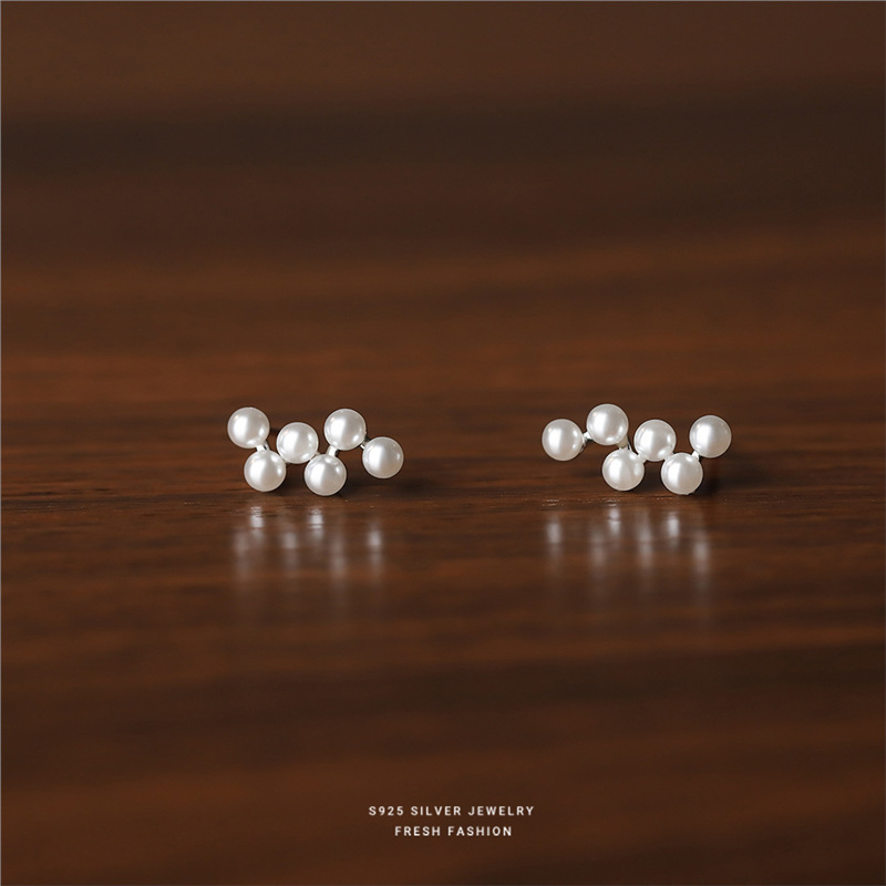 S Pure Silver Grape Pearl Earrings for Women's East Gate Elegance Instagram Style Simple and Versatile Girl Feeling Earrings