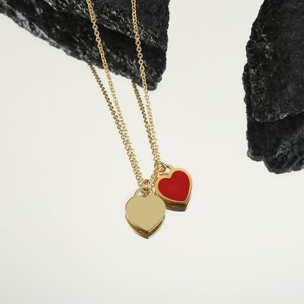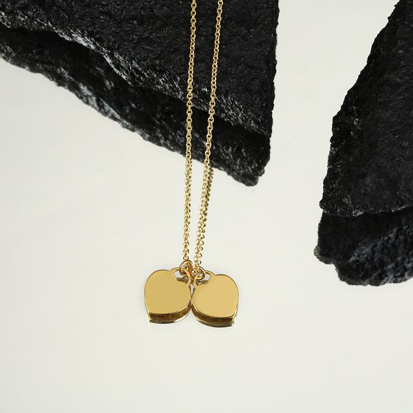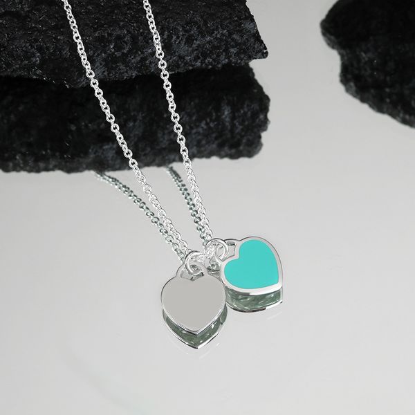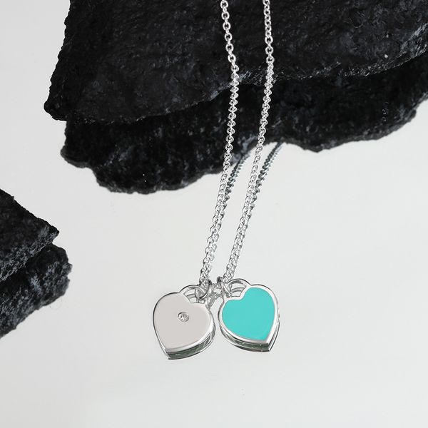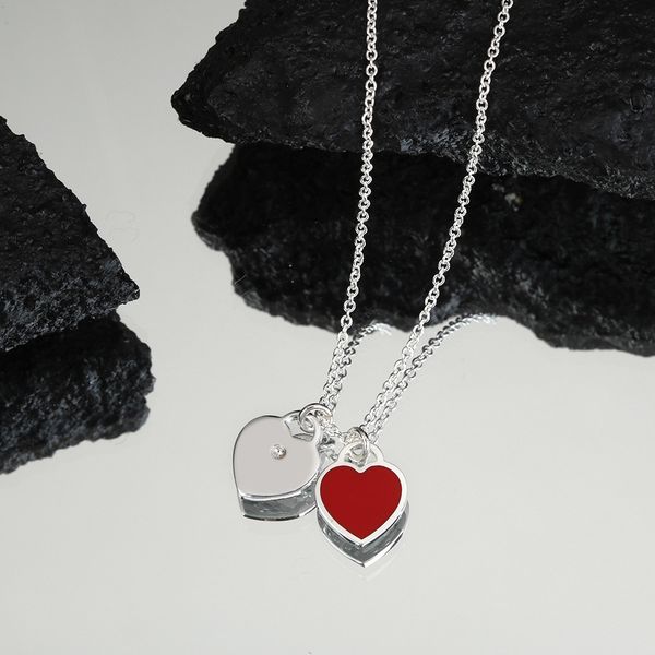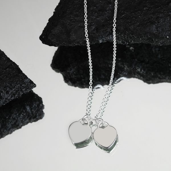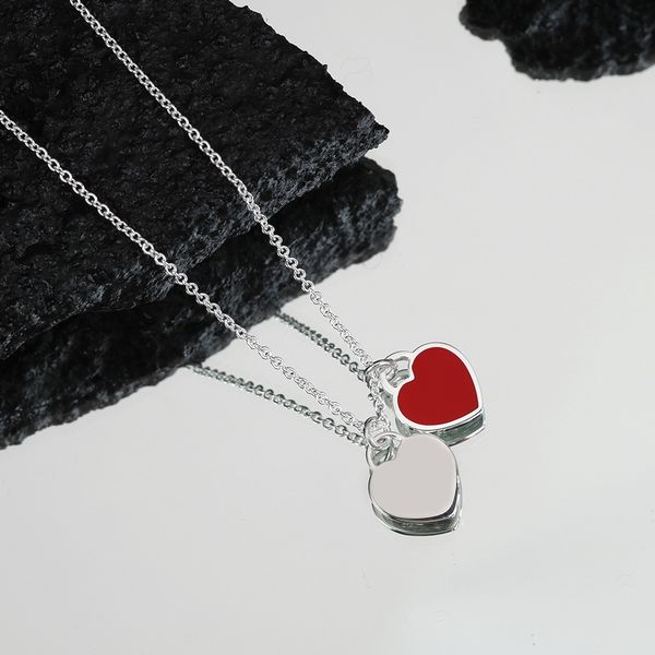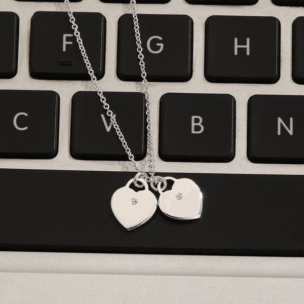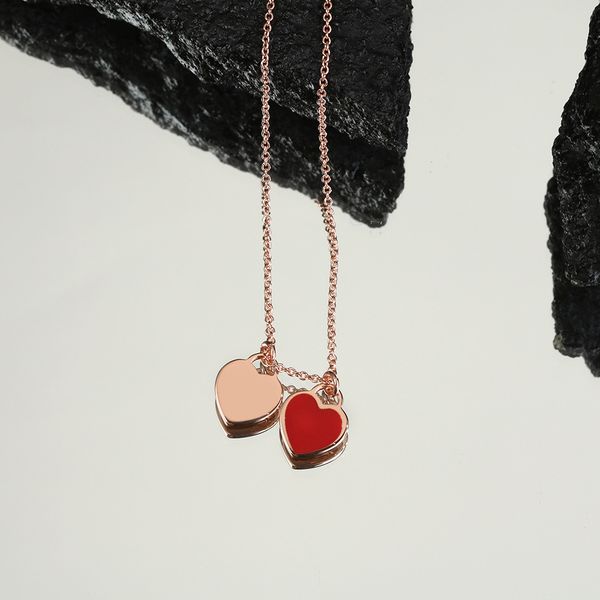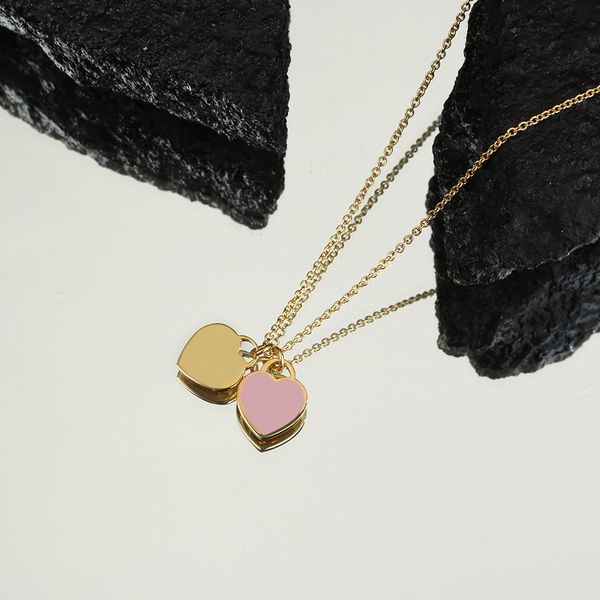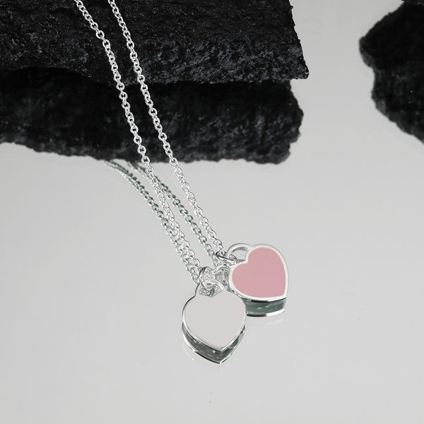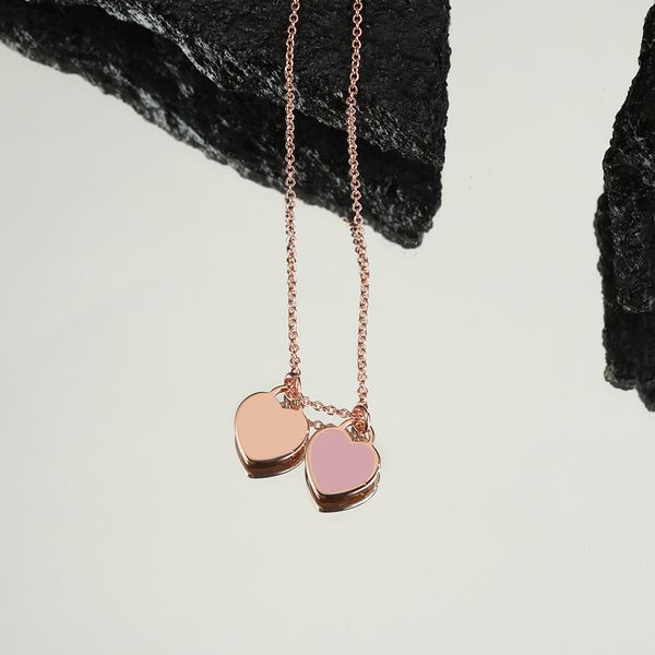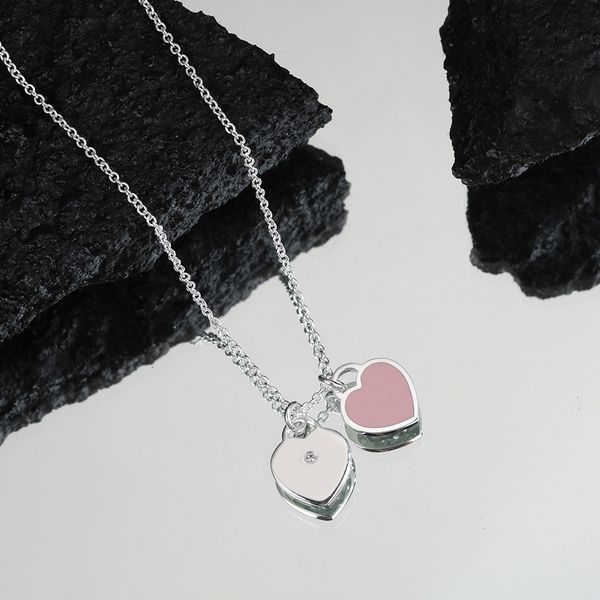 S Sier Love Double Pink Heart Designer Pendant Necklace for Women Girls Cross Link Chain Choker Lovely Cute Necklaces